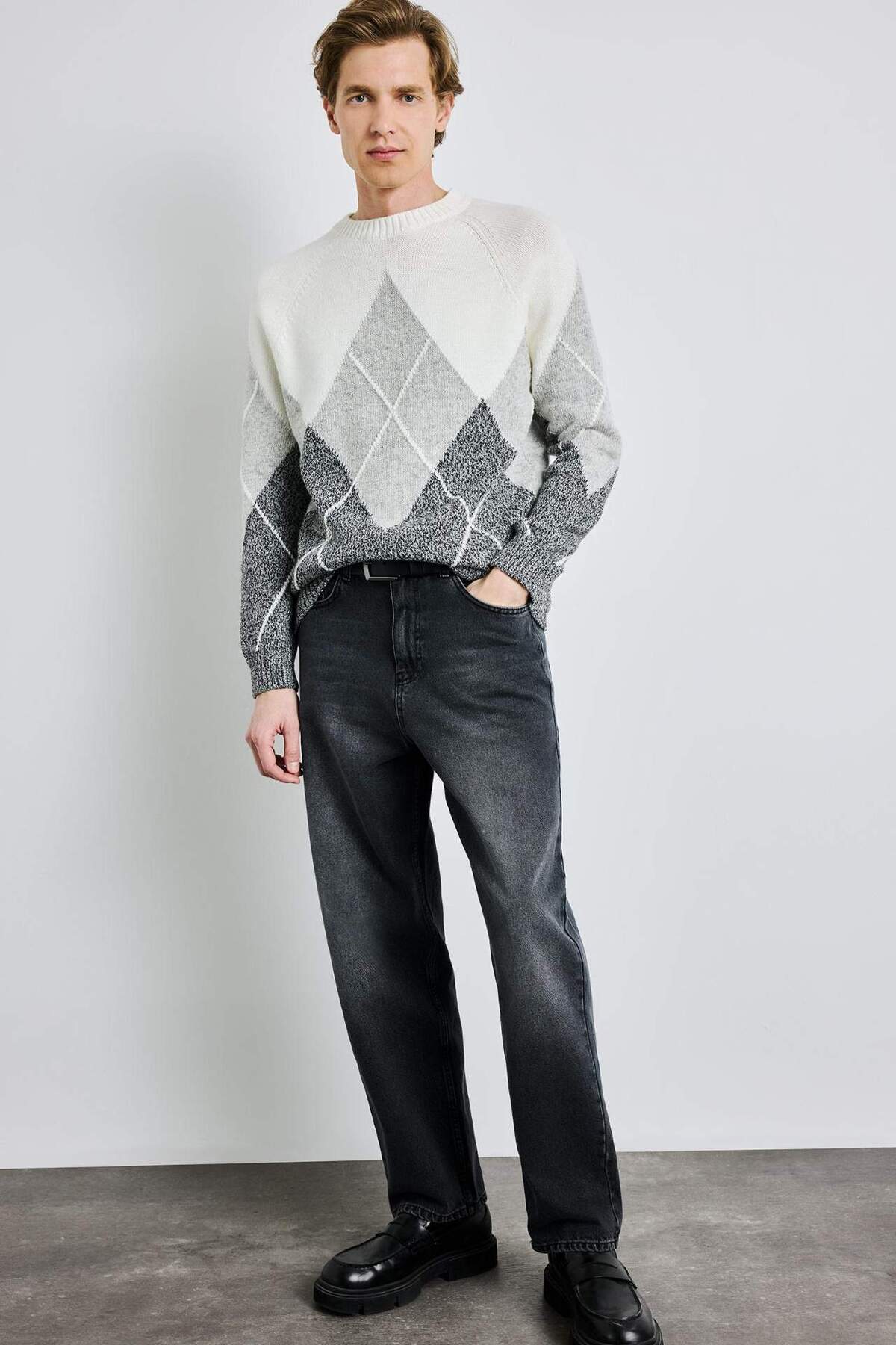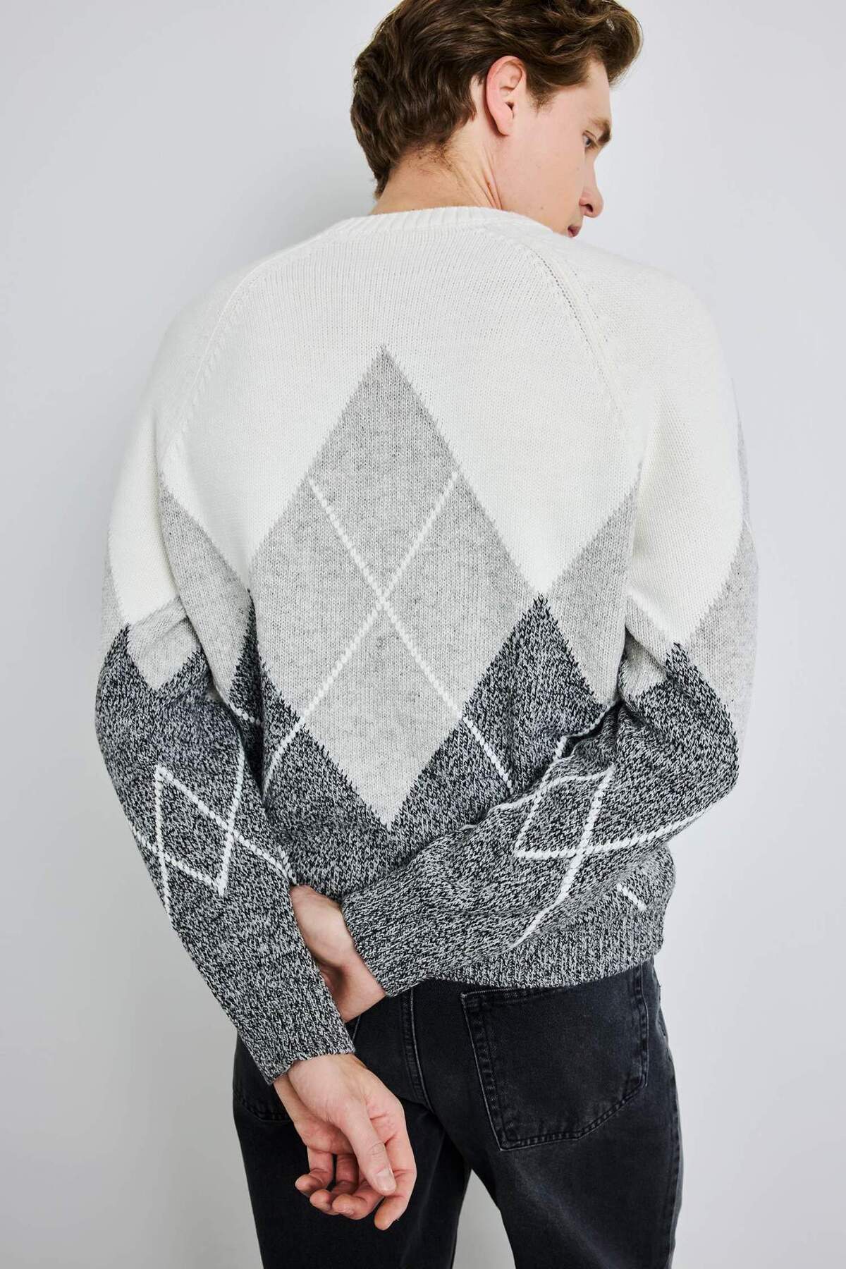 دفاکتو ژاکت بافتنی یقه گرد طرح الماسی سایز استاندارد G6180AX25CW