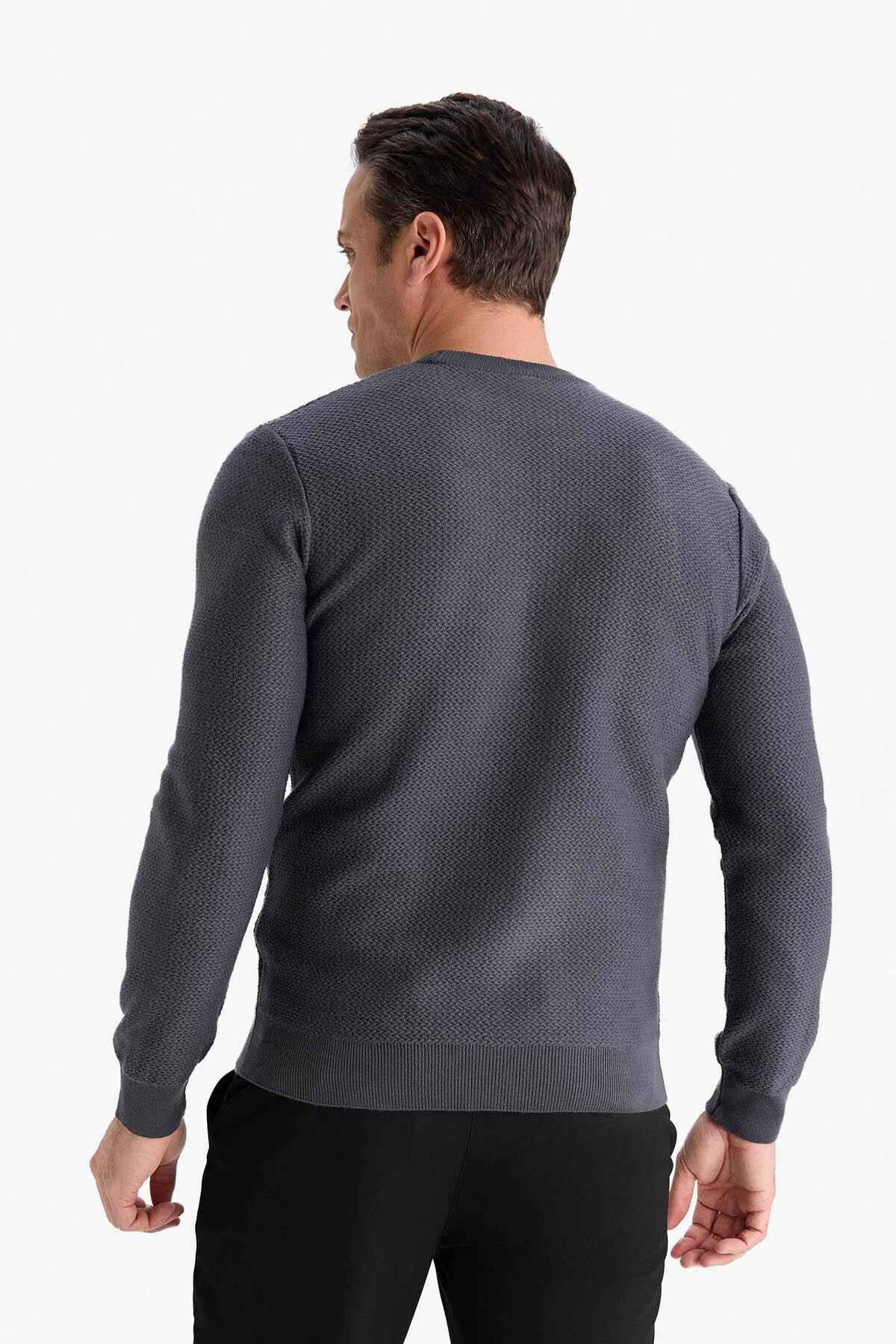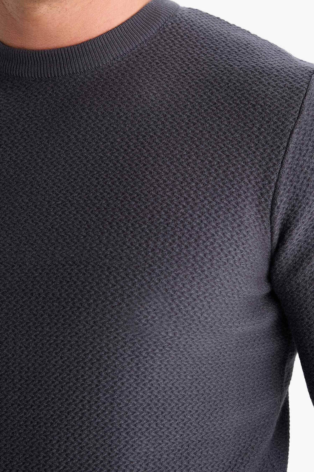 دفاکتو ژاکت بافتنی یقه گرد استاندارد سایز متوسط مردانه آنتراسیت C9618AX/AR4