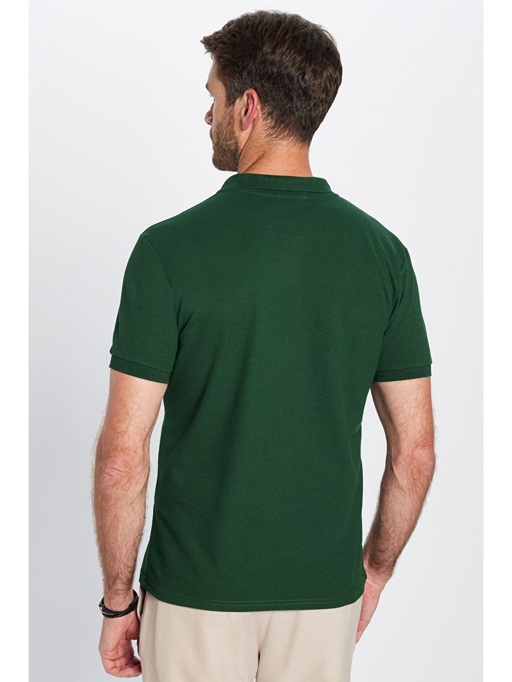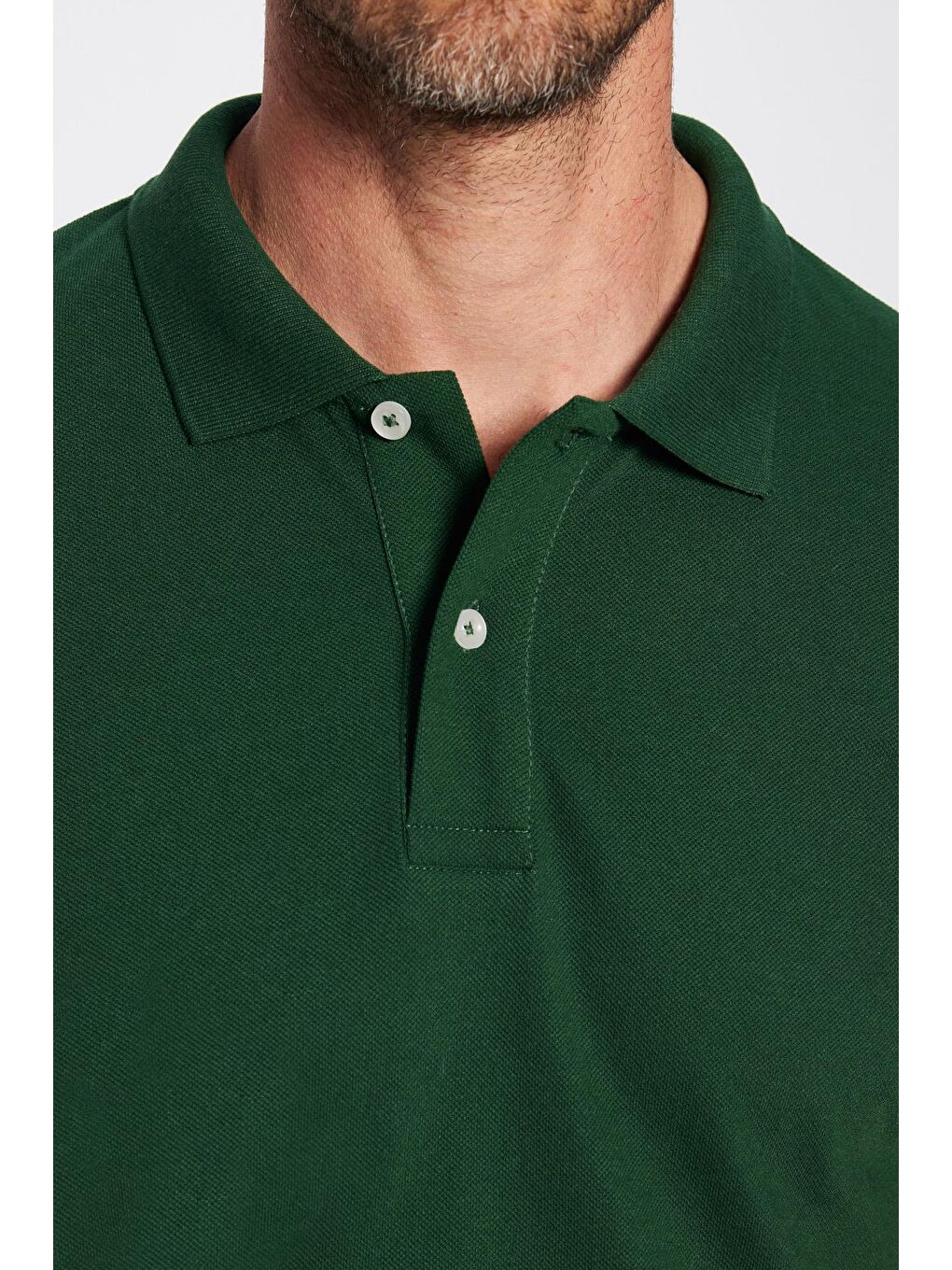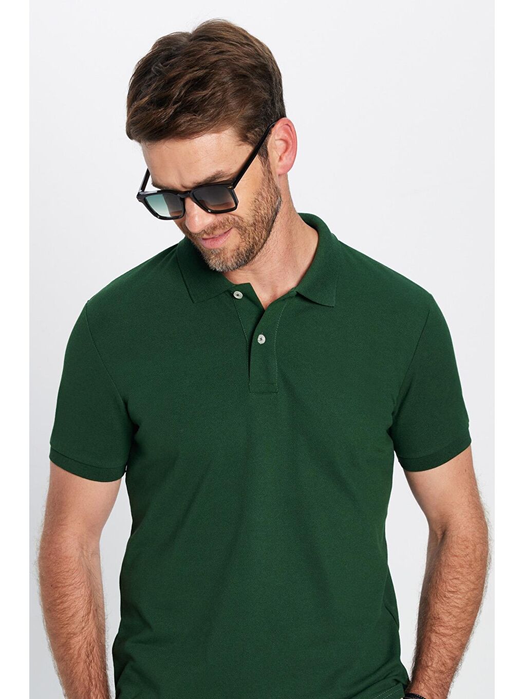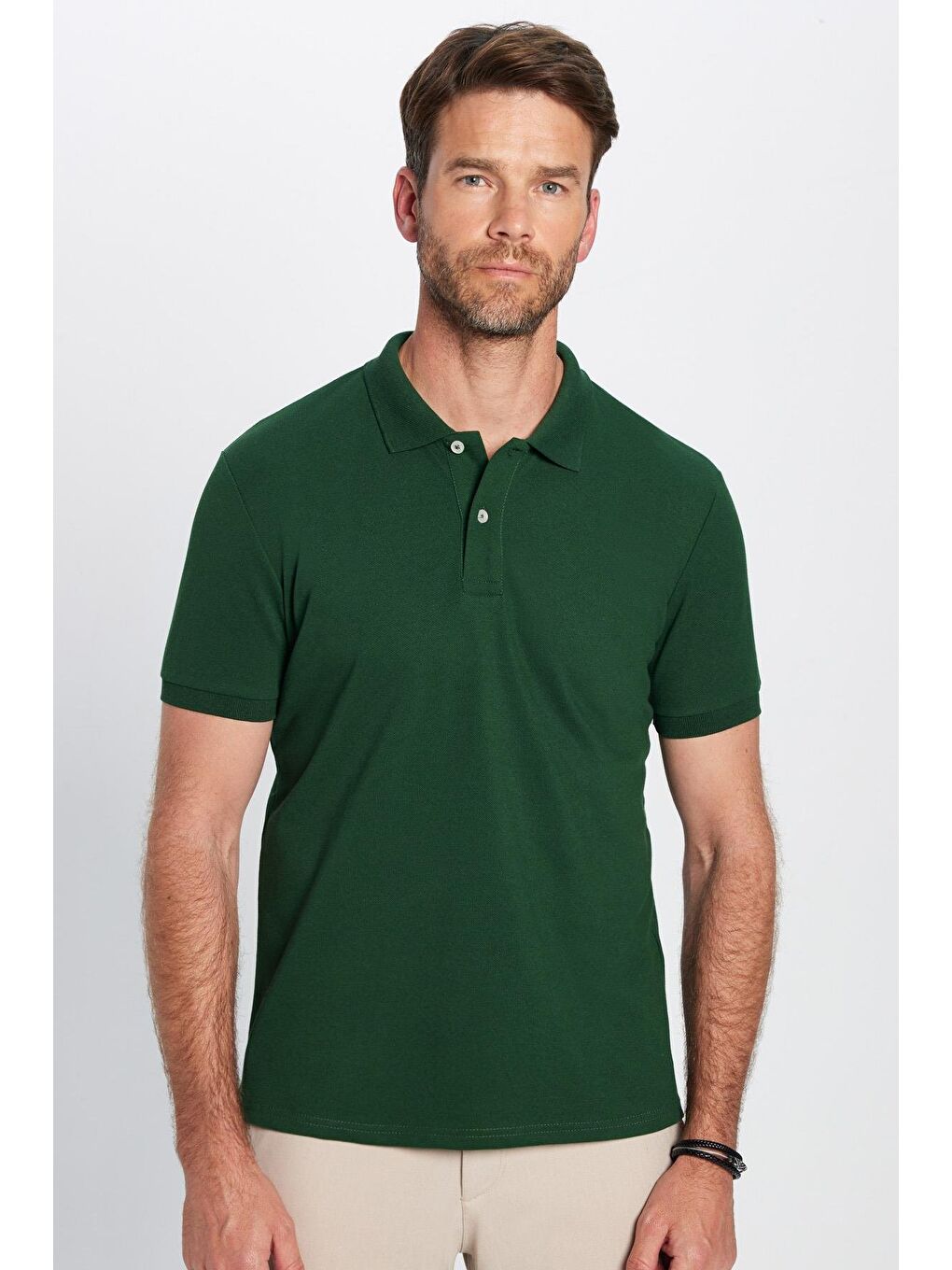 تی شرت یقه پولو خاکی پیکه ساده پارچه ای با بافت نرم نخی برش باریک مردانه