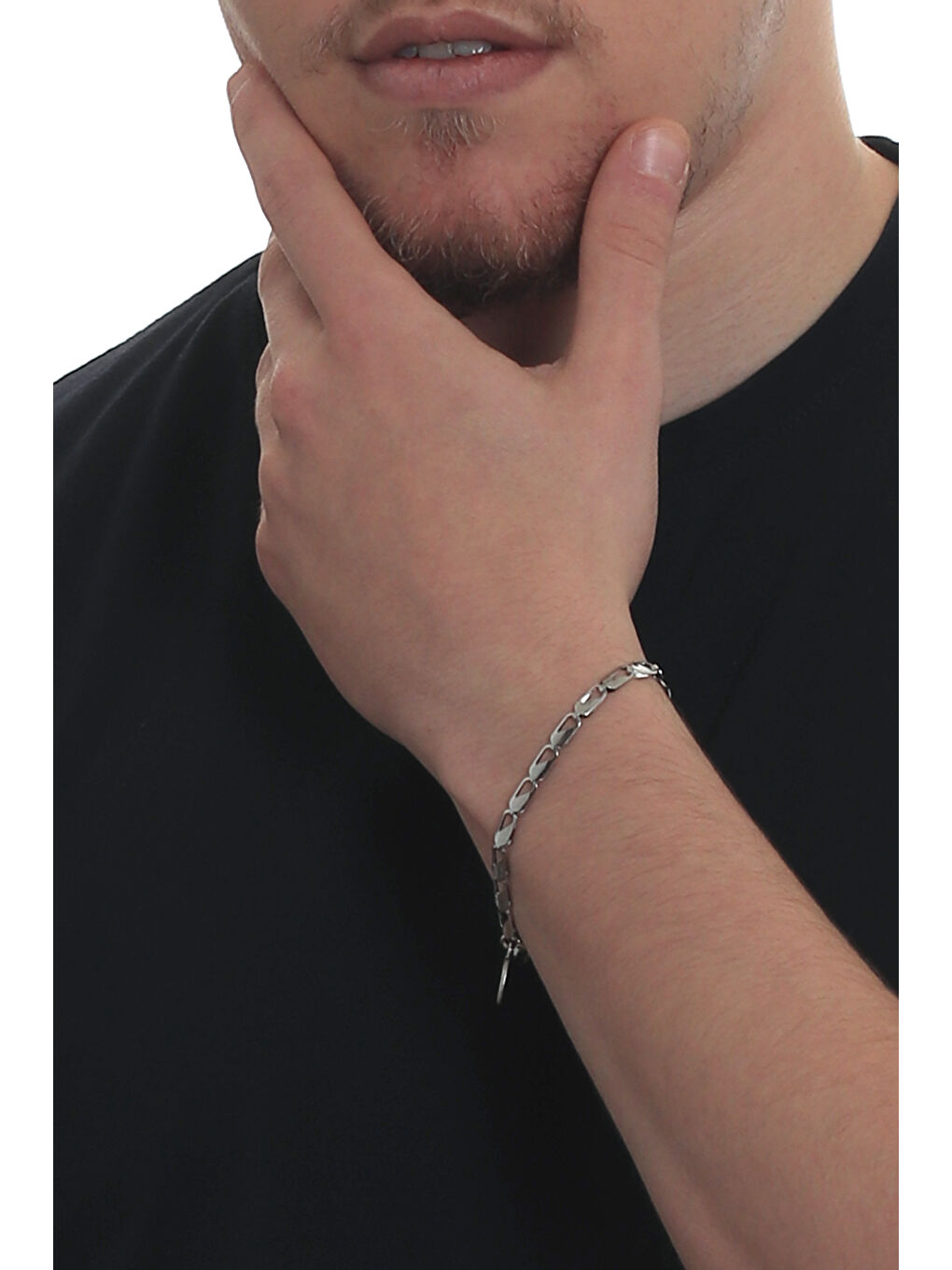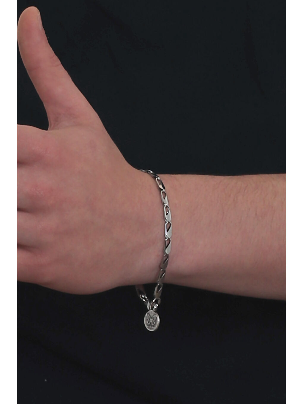 دستبند مردانه استیل زنجیری مدل چشم ماهی خاکستری