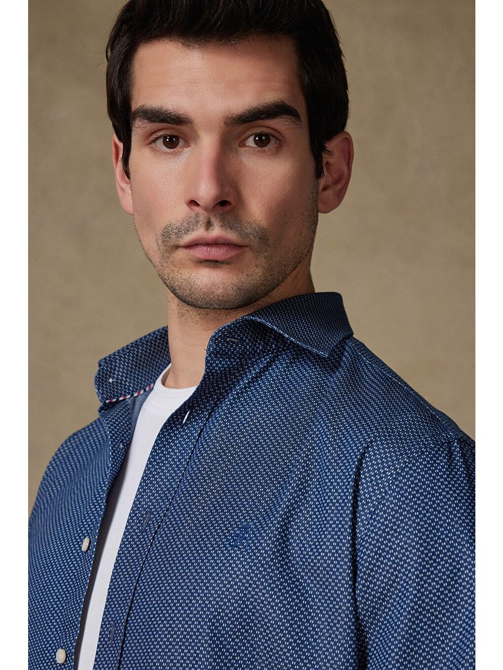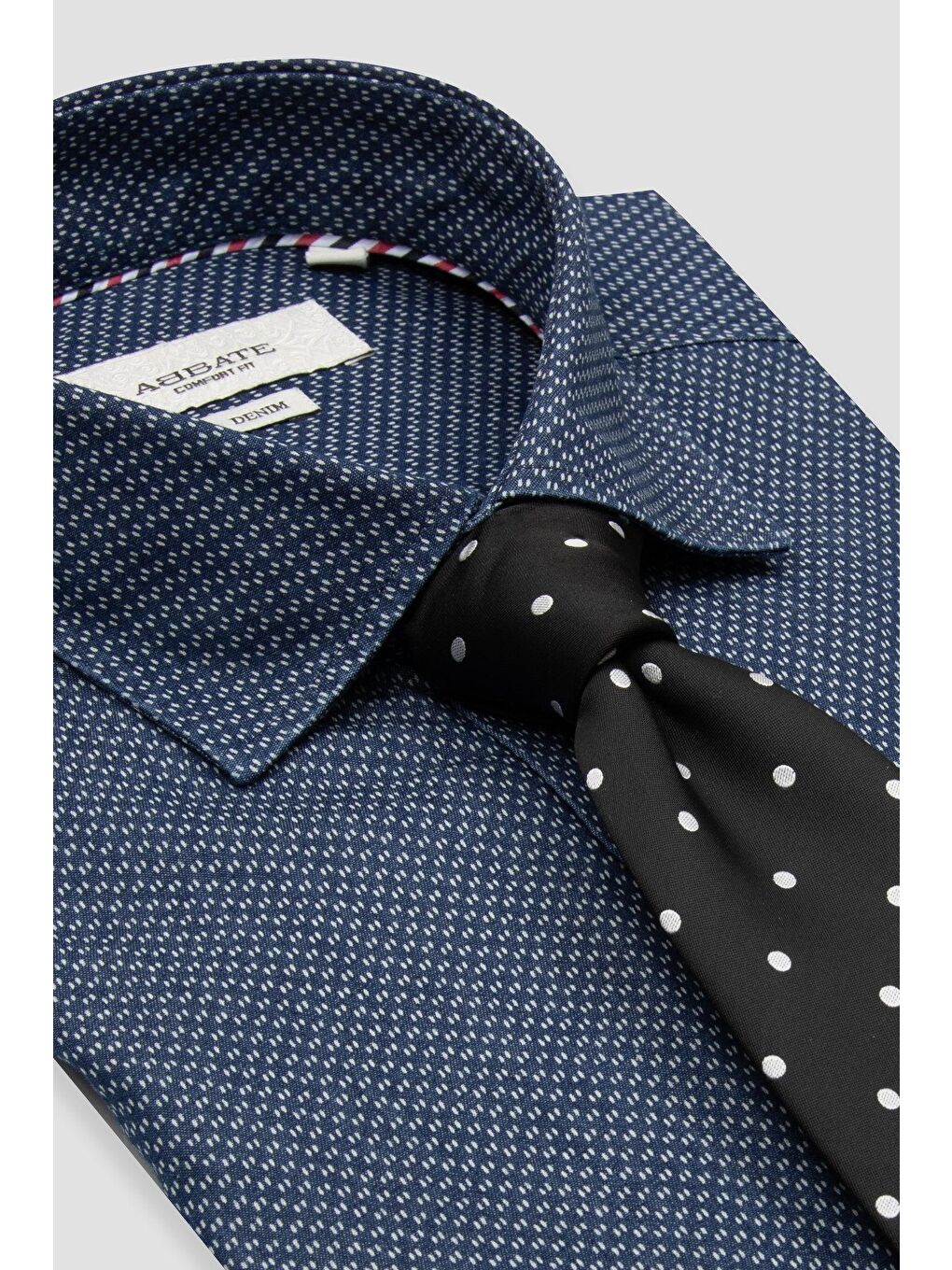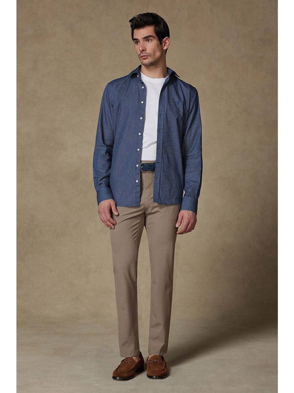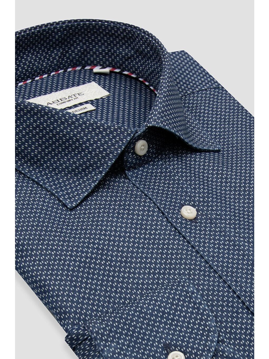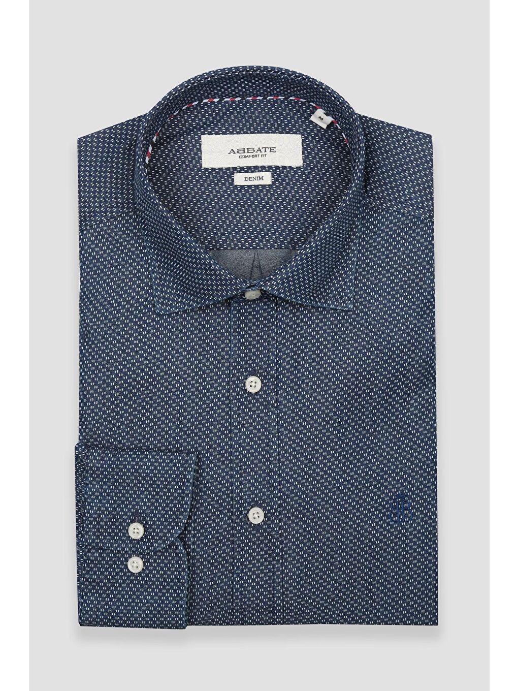 پیراهن مردانه طرحدار دوناتلو جین نخی، یقه کلاسیک سرمهای، راحت و مناسب