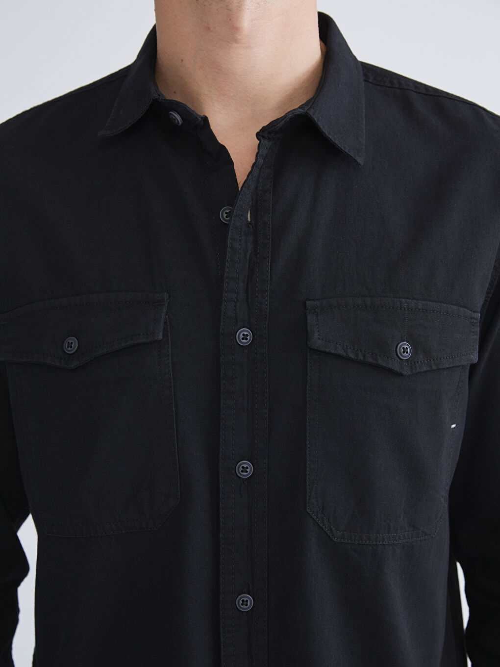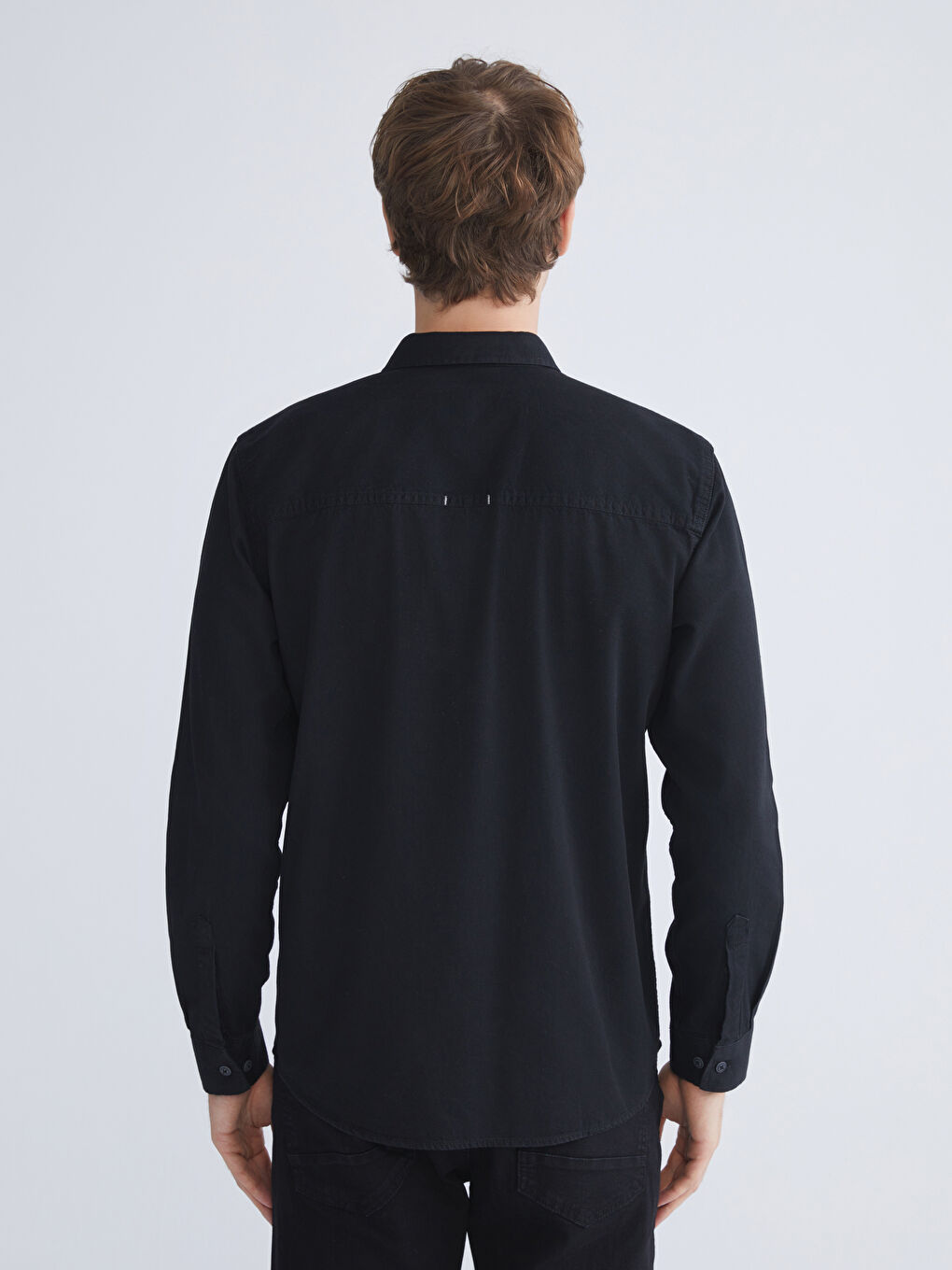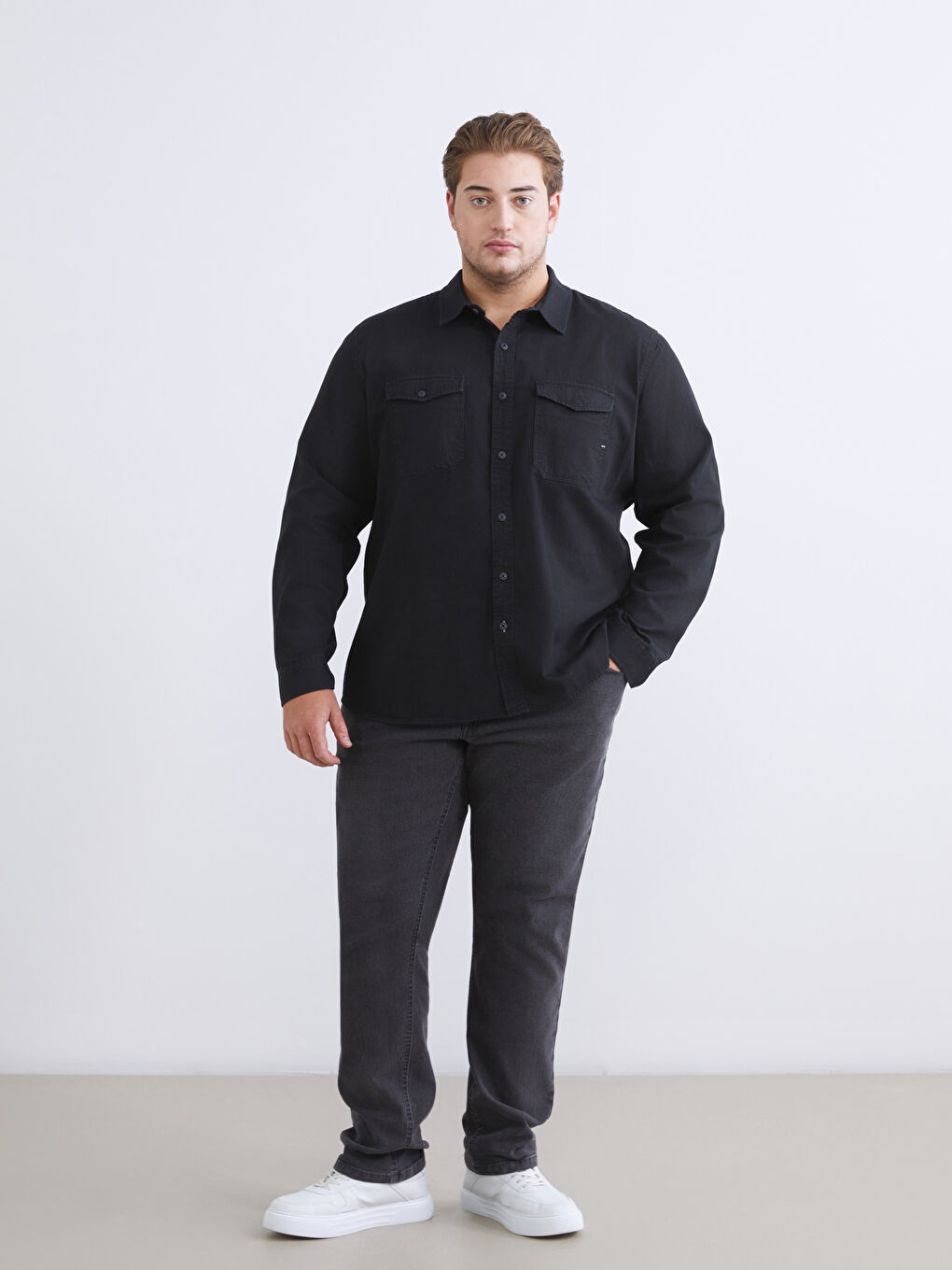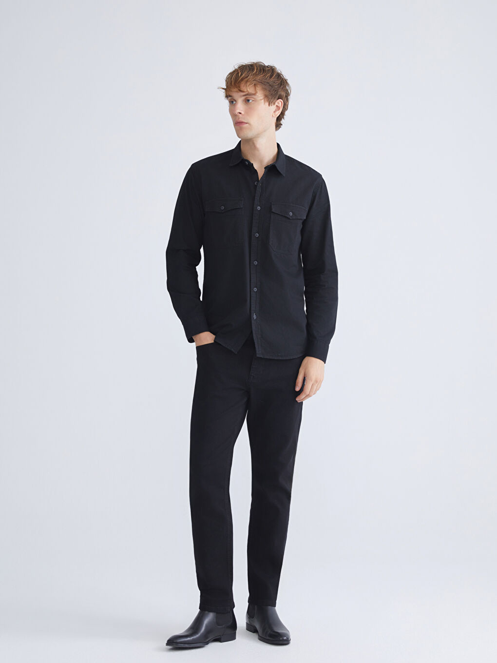 پیراهن جین مردانه آستین بلند مشکی معمولی فیت