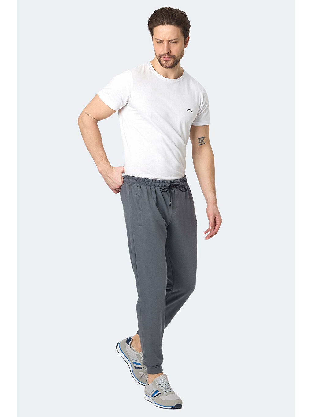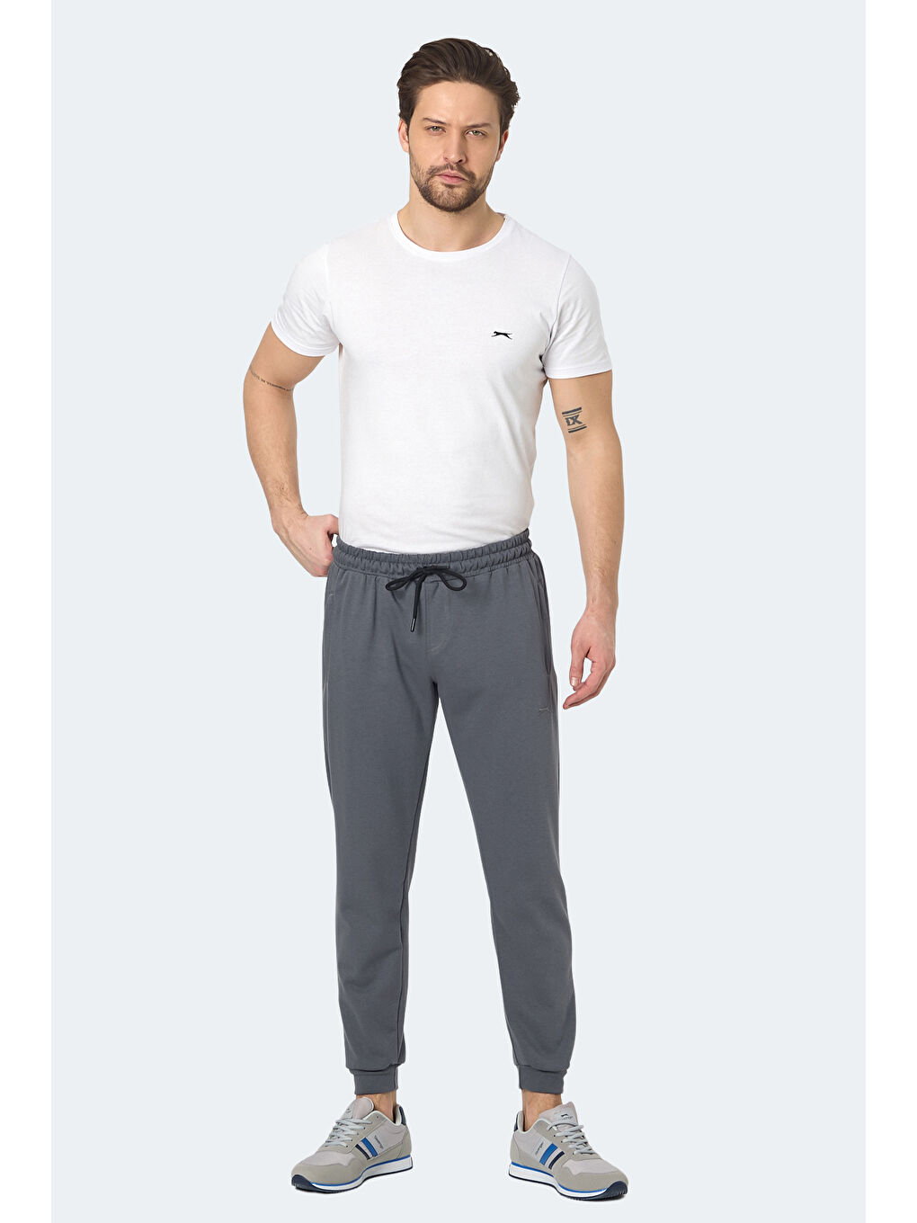 شلوار ورزشی مردانه جیبدار و لاغر پاچهدار خاکستری تیره KISHA IN