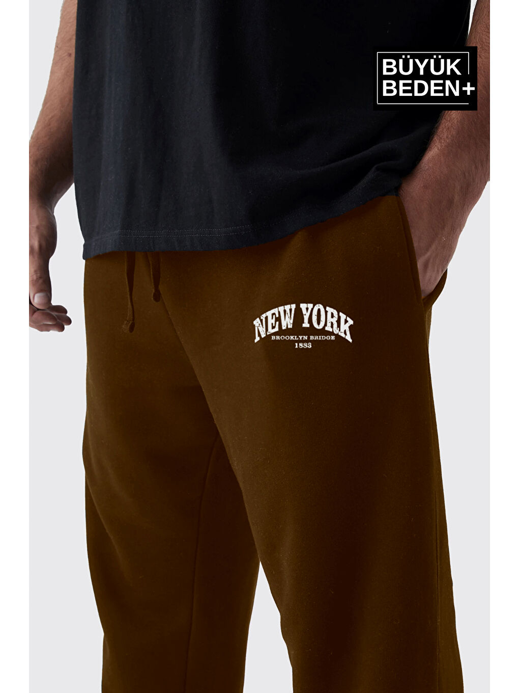 شلوار ورزشی مردانه طرحدار نازک قهوهای سایز بزرگ کشی نیویورکی مدل Jogger SPR24BEA48
