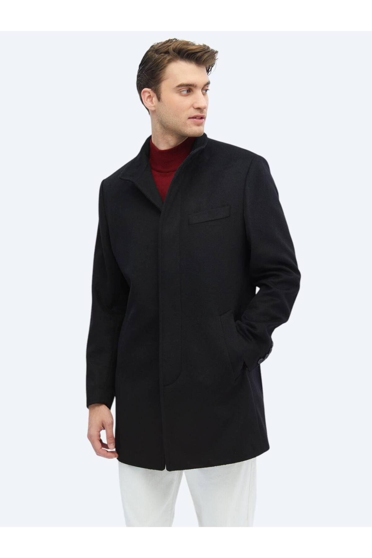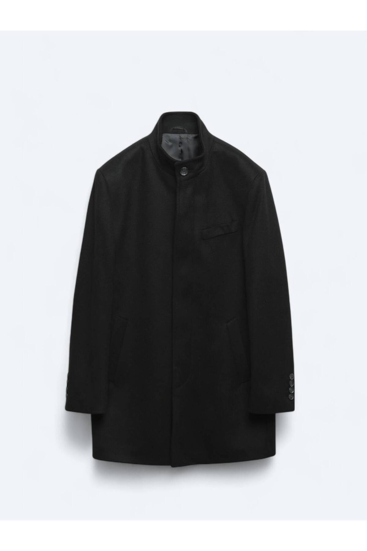کیپ کت کلاسیک بافته شده مشکی یقه ایستاده معمولی