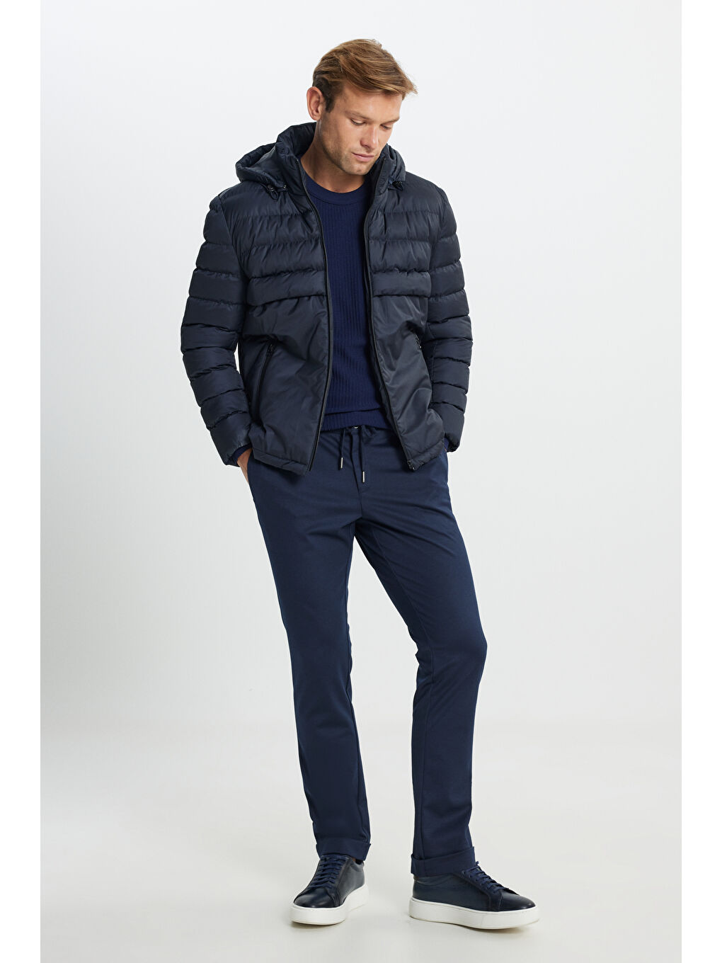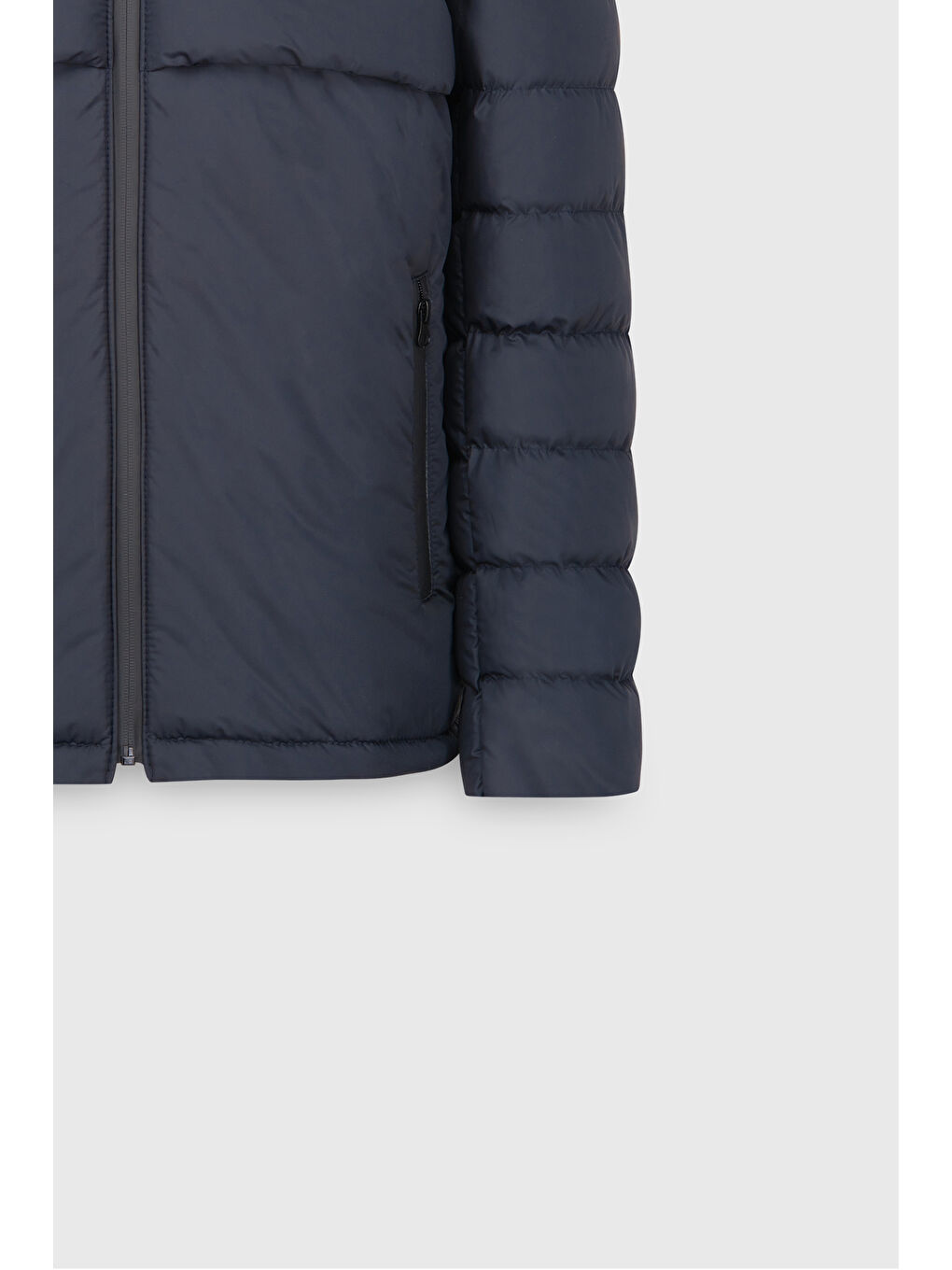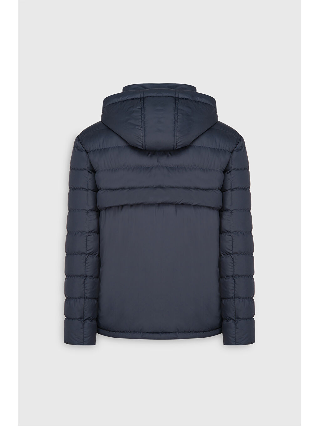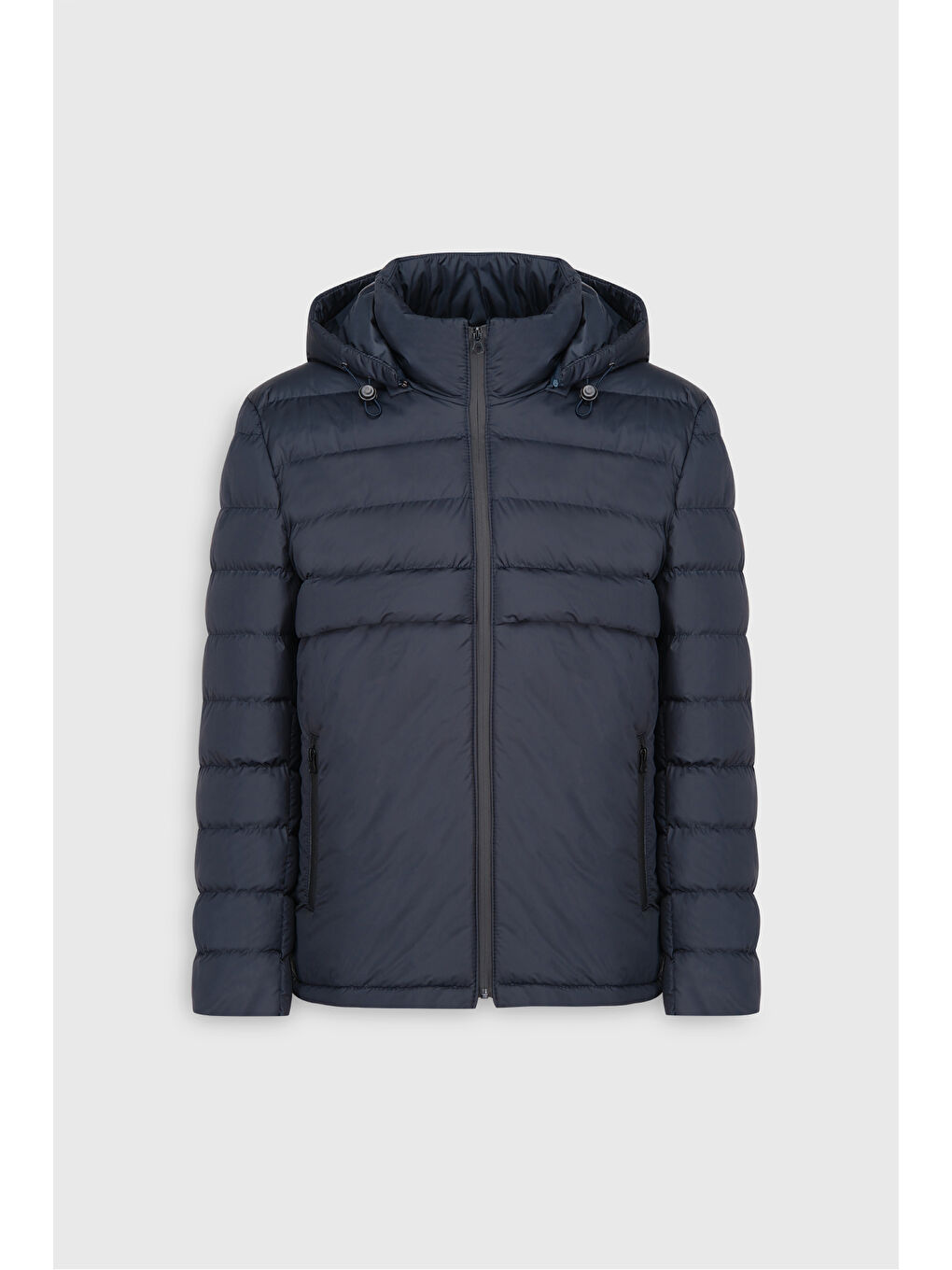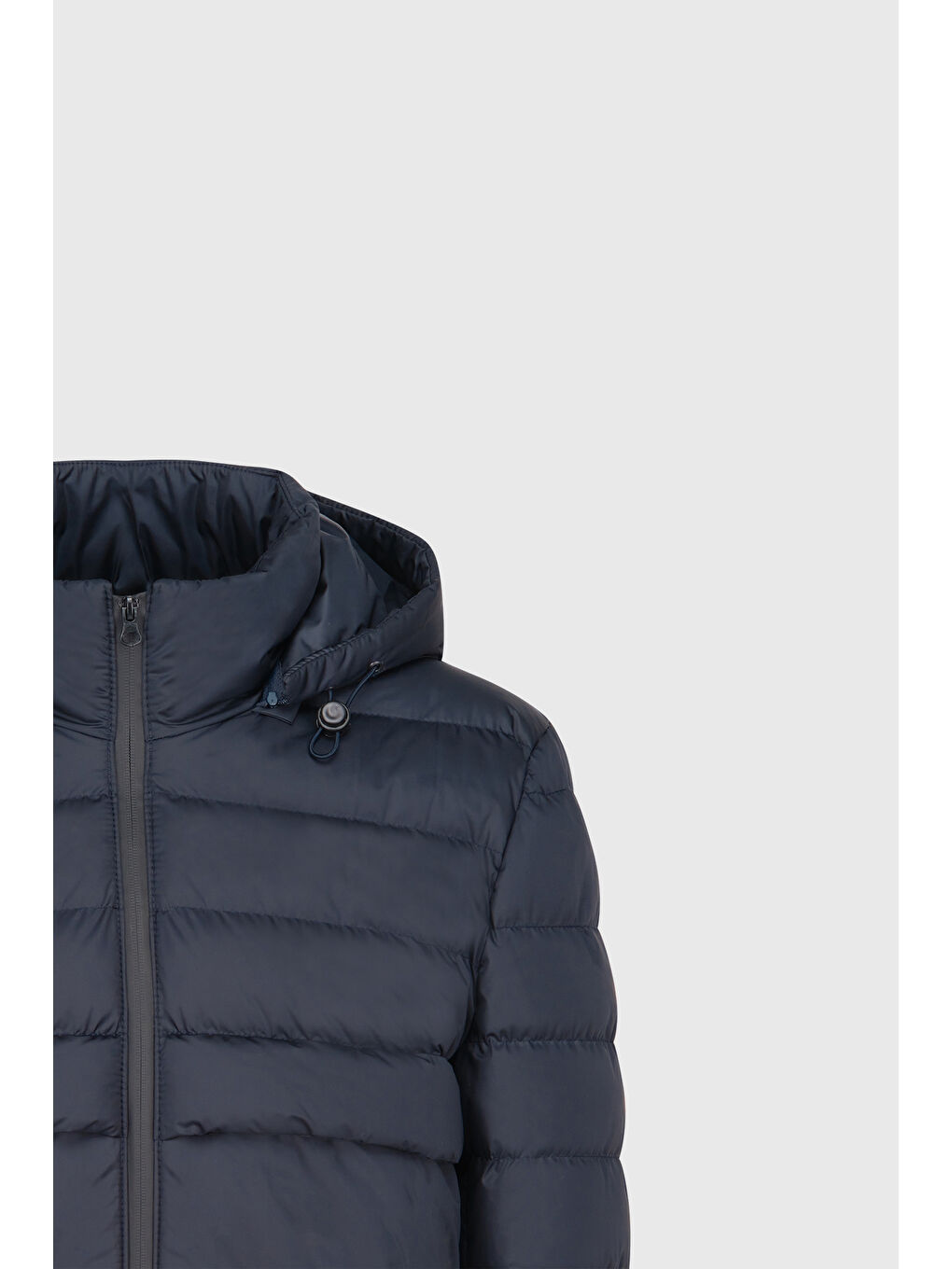 Erkek Lacivert Standart Fit Normal Kesim Çıkma Kapüşon Dik Yaka Yan Cepli Mont
