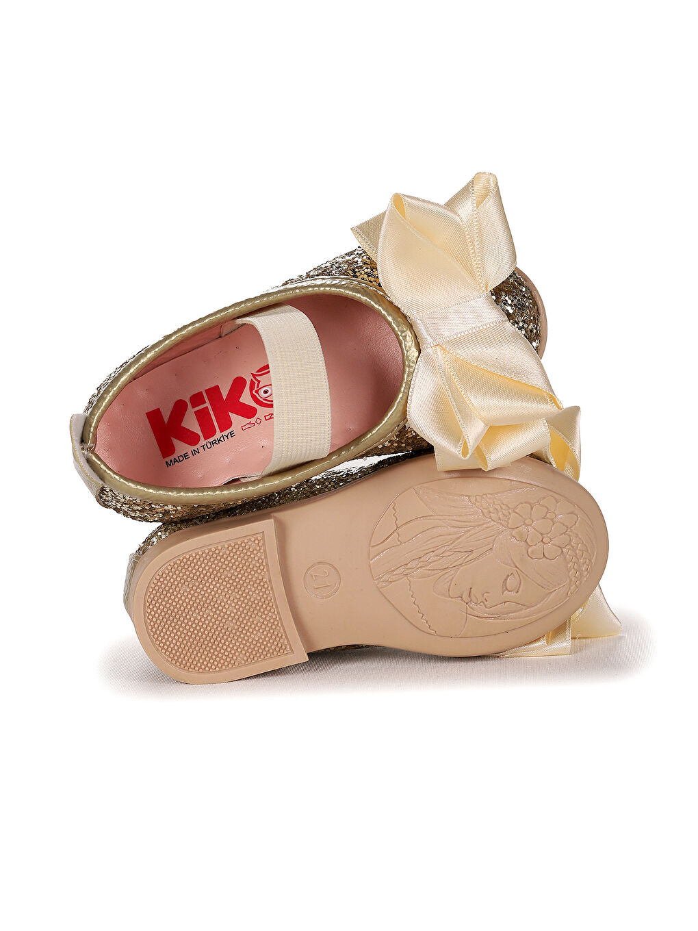 کفش بالرین دختر بچه الاستیک پاپیون شیشه شکسته زرد