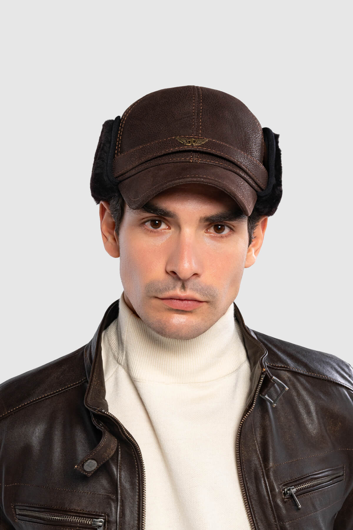 تامر تانجا کلاه قهوه‌ای چرم اصل مردانه