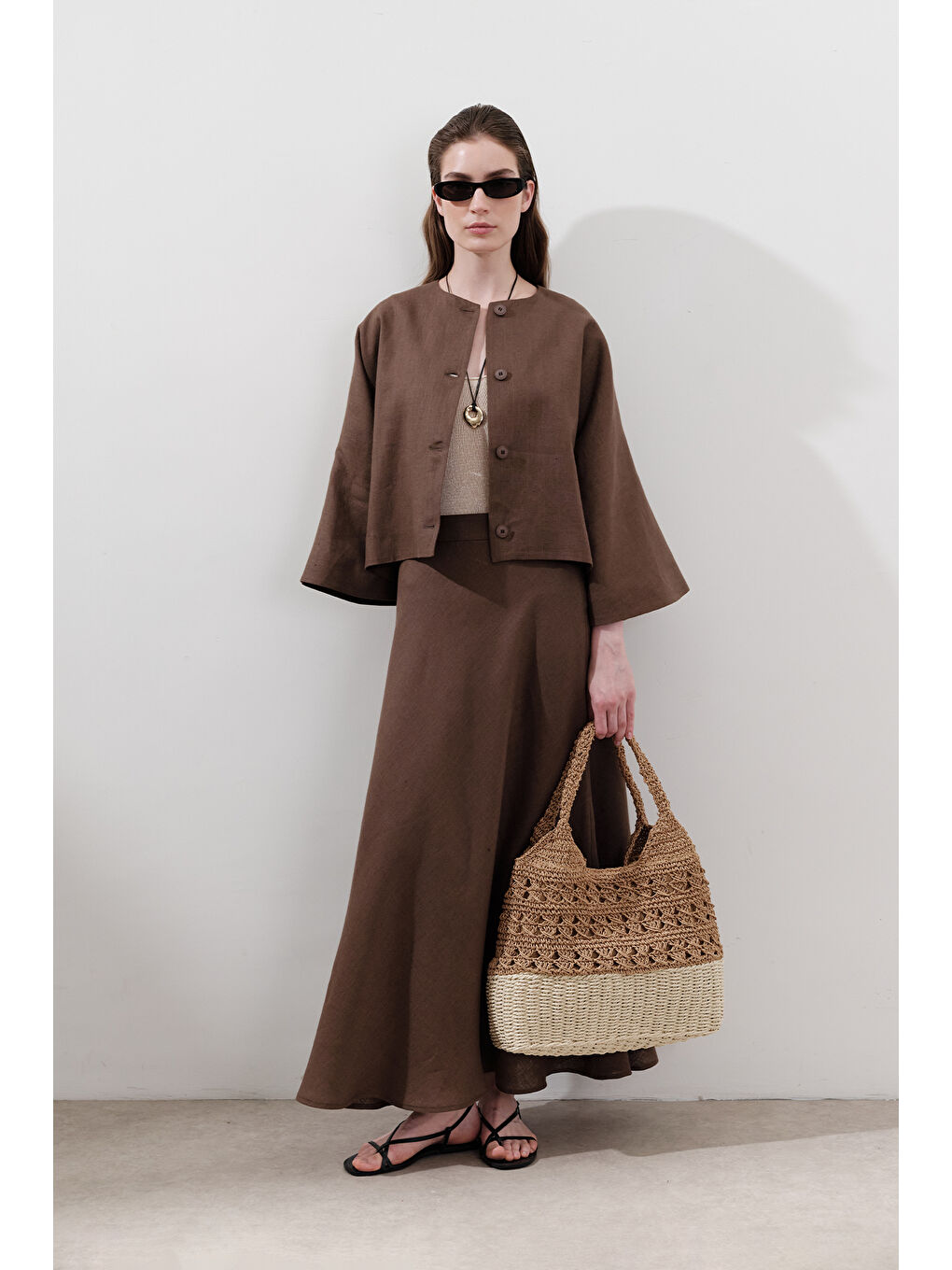 کیف دستی حصیری دو رنگ بژ طبیعی