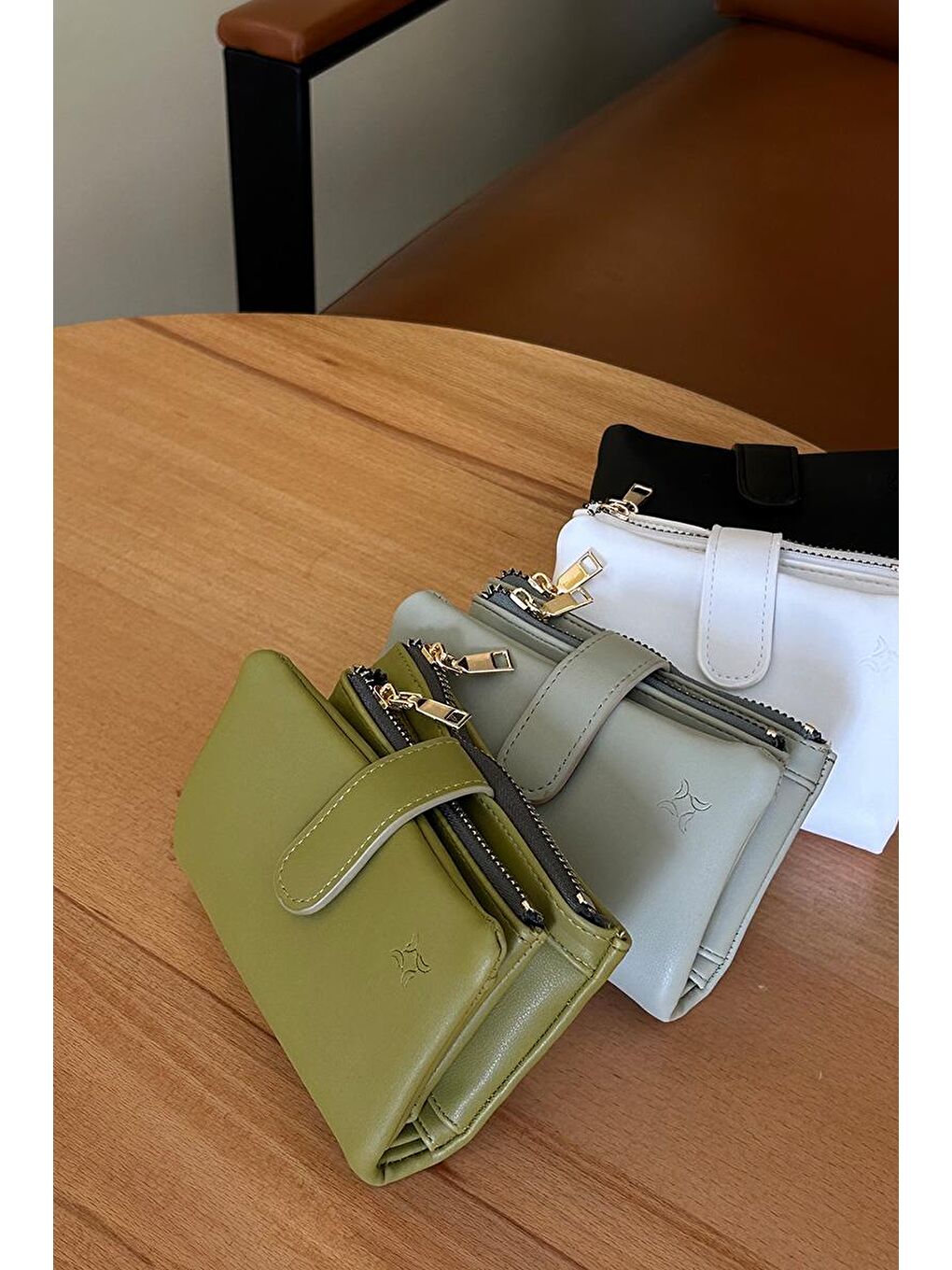 ابعاد؛ عرض: ۱۰ سانتی‌متر طول: ۱۴ سانتی‌متر عرض: ۳ سانتی‌متر جنس: چرم مصنوعی ساخته شده از فلز بادوام طلایی رنگ لوازم جانبی. دارای محفظه برای اسکناس و سکه. دارای ۱۰ جای کارت. در مجموع از ۷ محفظه تشکیل شده است، شامل ۲ جای سکه زیپ‌دار و ۴ جای کوچک. رنگ لوازم جانبی ممکن است متفاوت باشد.