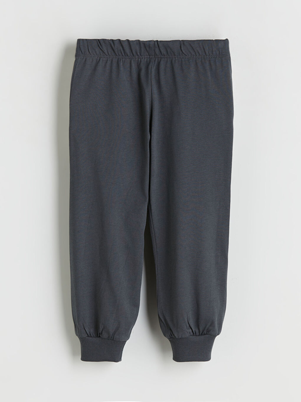 کت و شلوار پسرانه چاپ شده متشکل از یقه خدمه، تی شرت آستین بلند و ته لباس ورزشی با کمر کشسان و سرآستین های آجدار است.