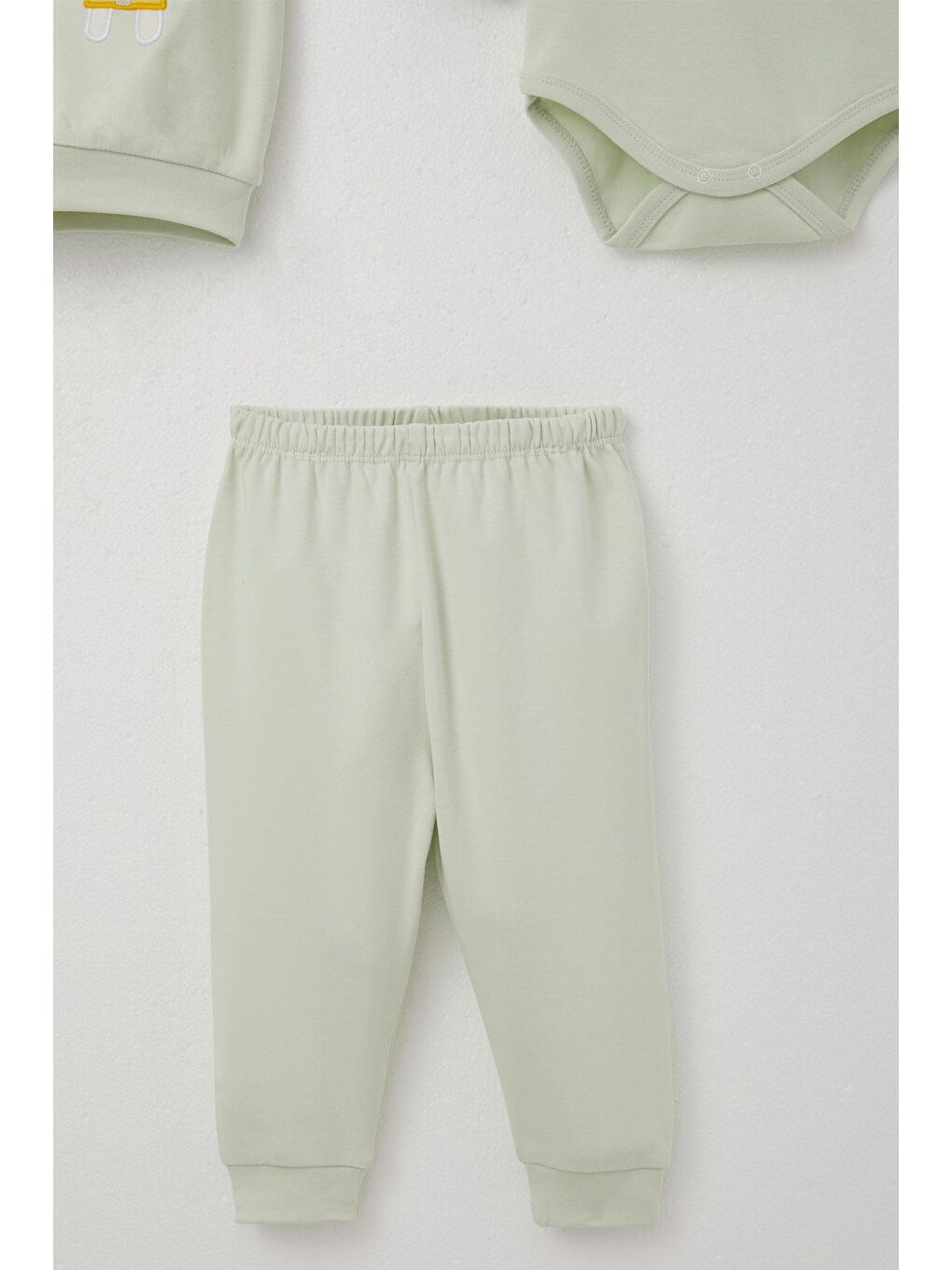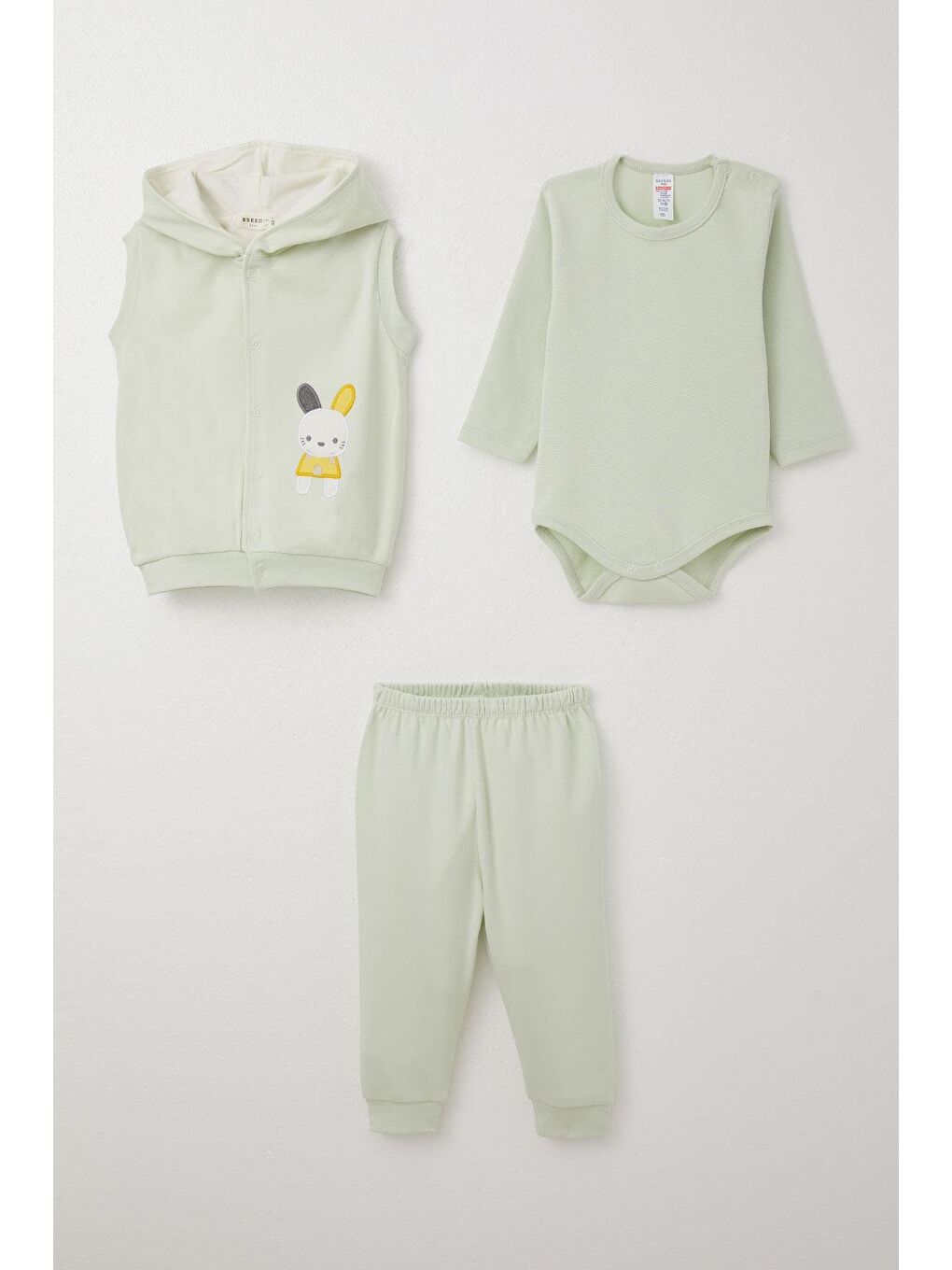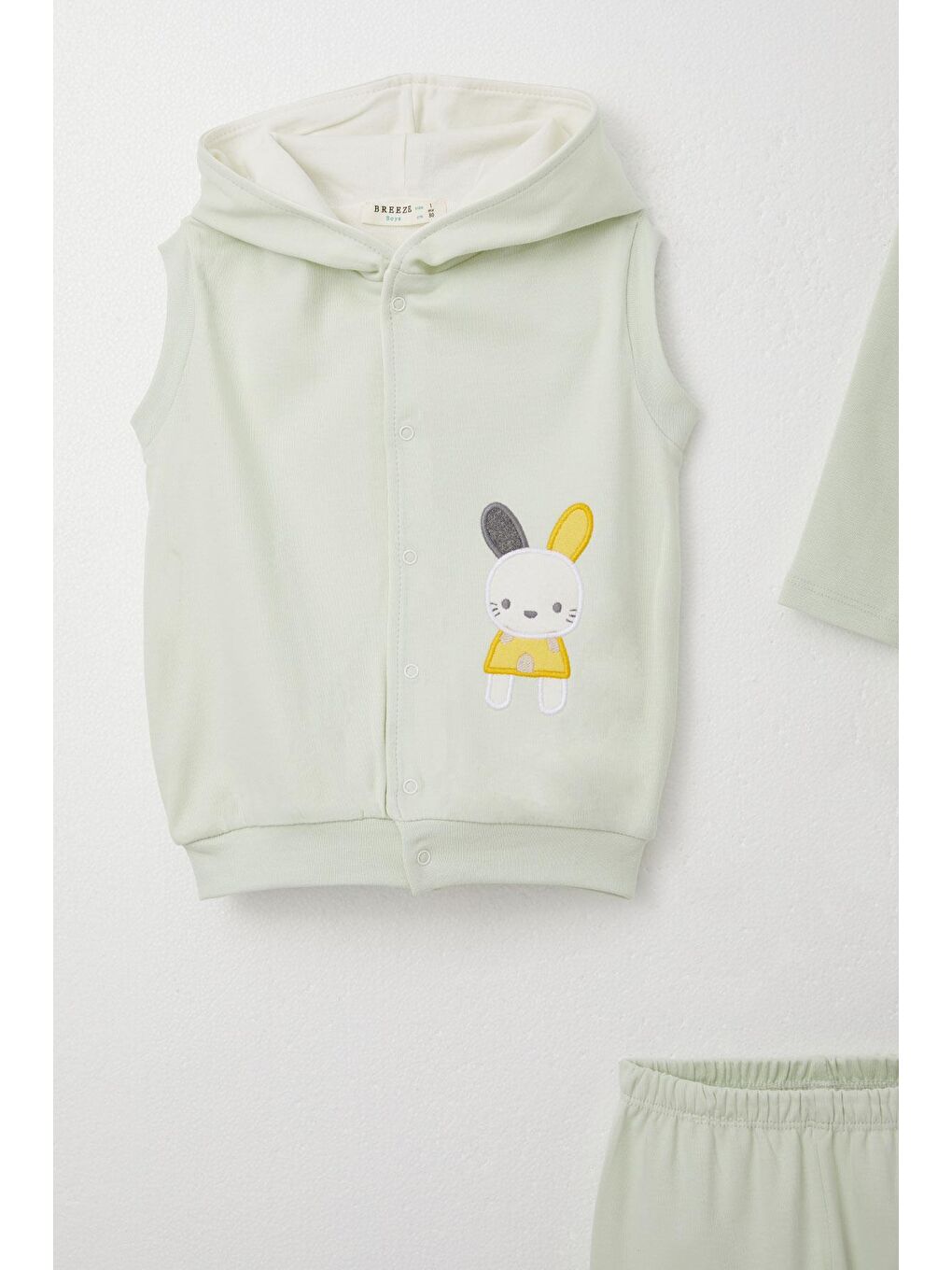 ست 3 تکه بدنه نوزاد پسرانه فیروزه ای با کلاه گلدوزی شده خرگوش ناز، سبز آبی (4 تا 9 ماهه)