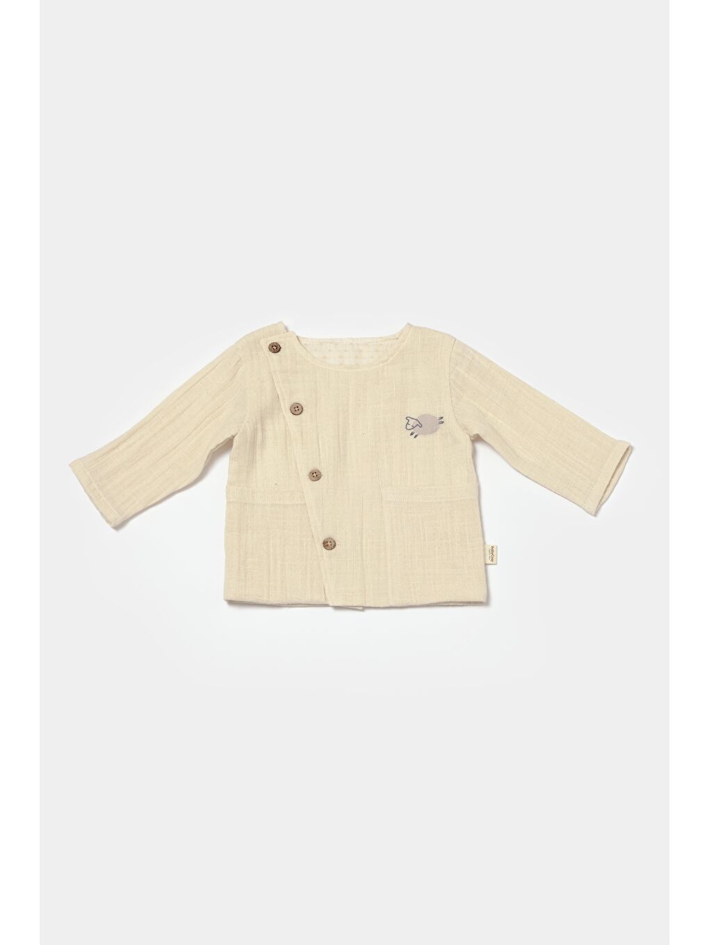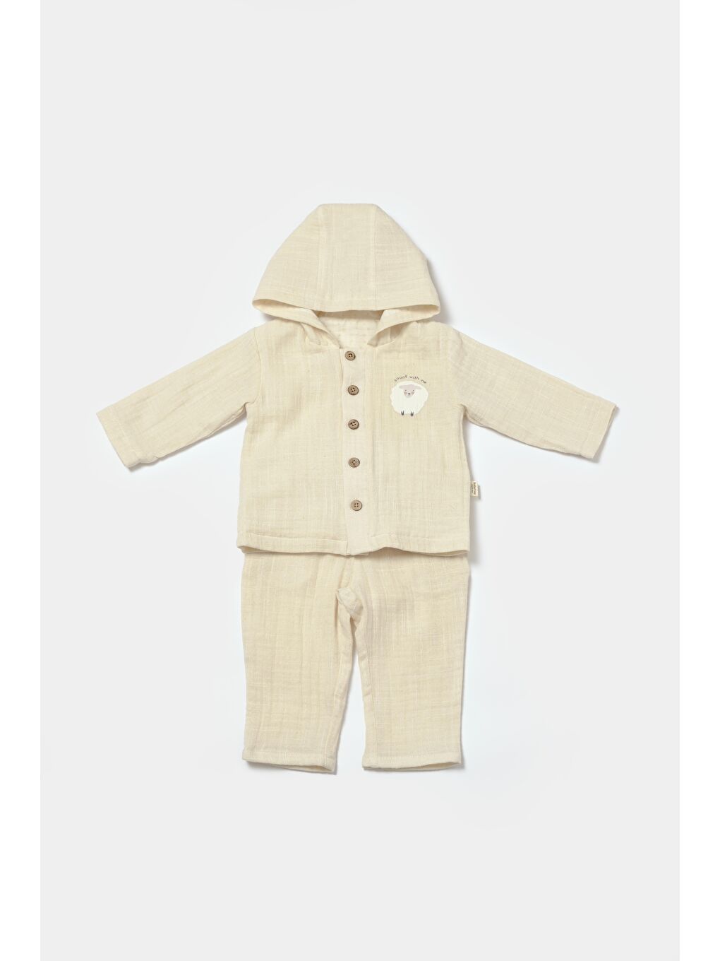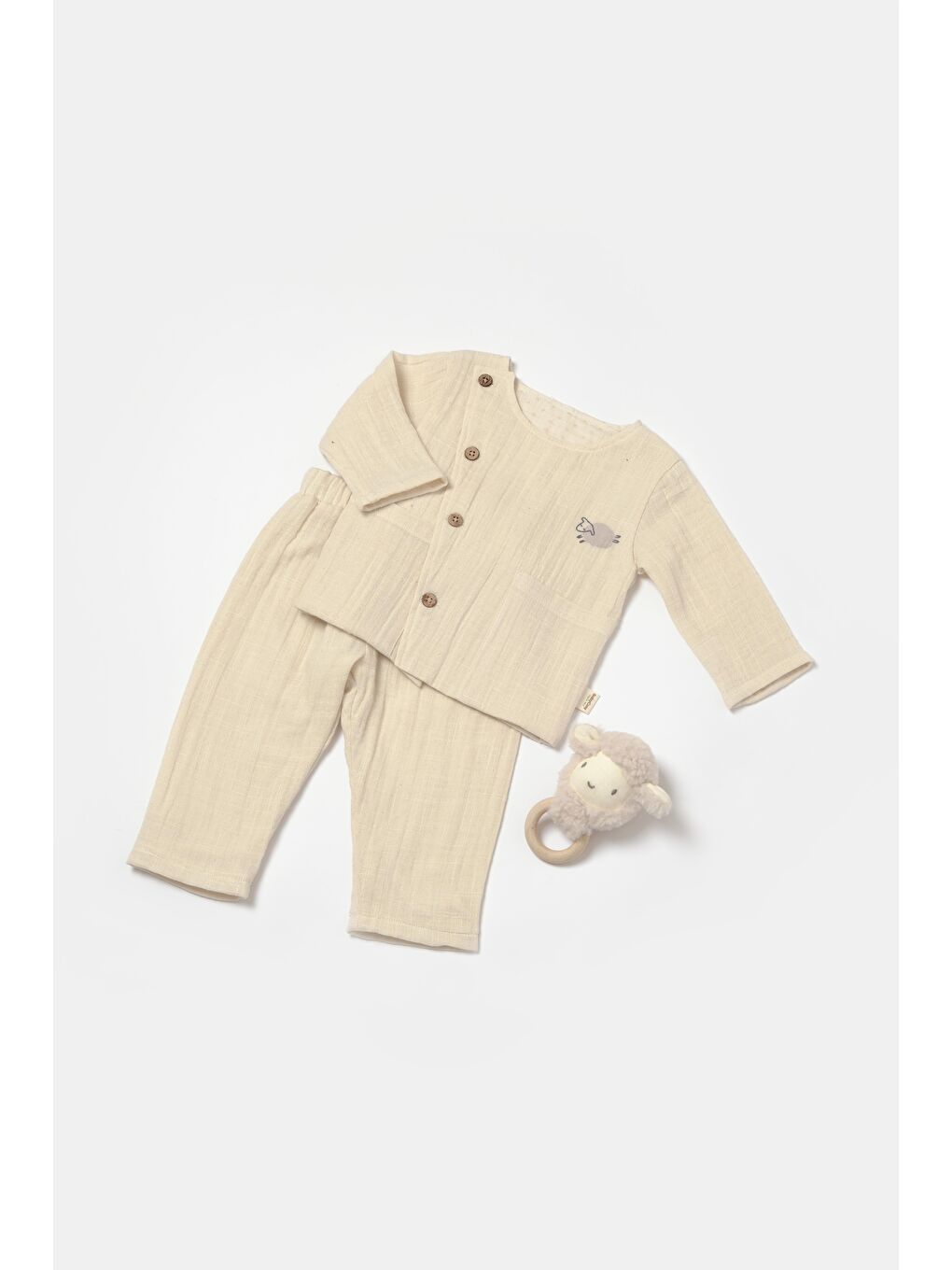 ست کودک یونیسکس پنبه ای بژ بره دوزی دکمه دار – پارچه ارگانیک