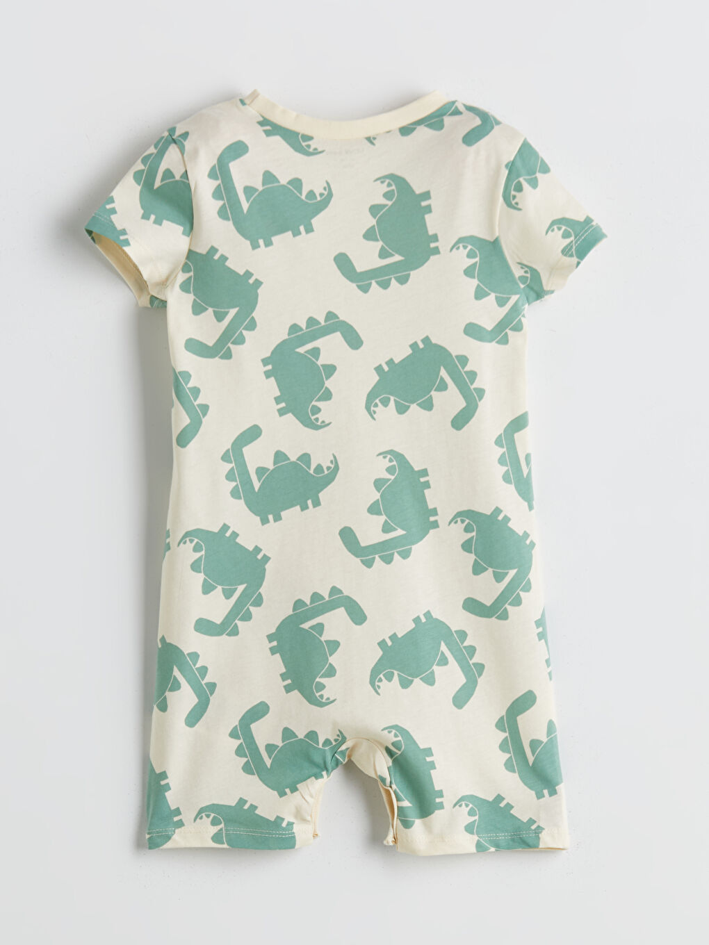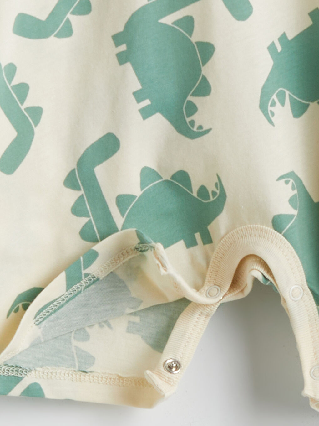 روفرشی نوزاد پسر با طرح دایناسور با یقه خدمه و آستین کوتاه. بسته شدن فاق و پاهای کوتاه.