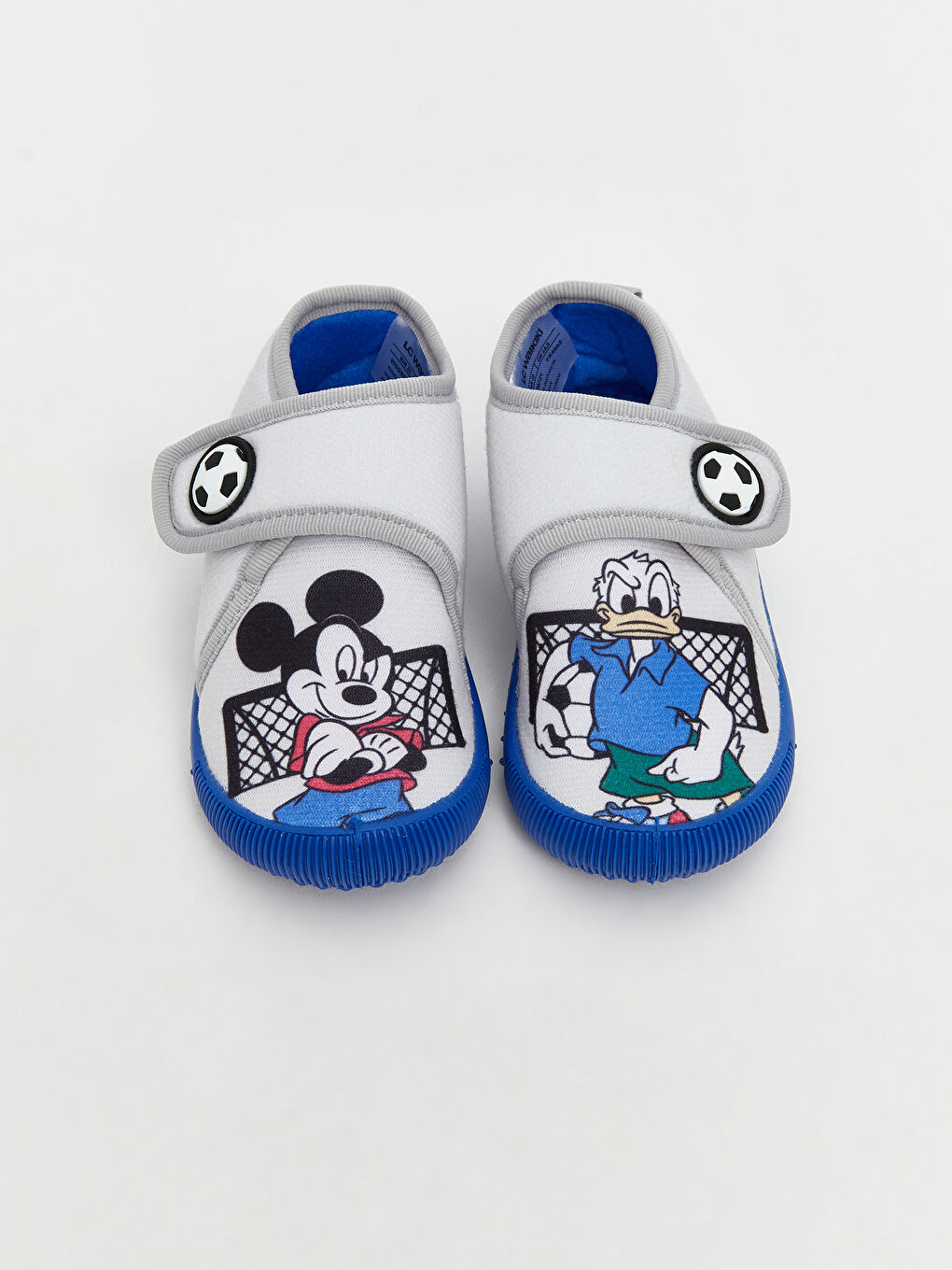 دمپایی نوزاد پسر با چاپ میکی موس خاکستری