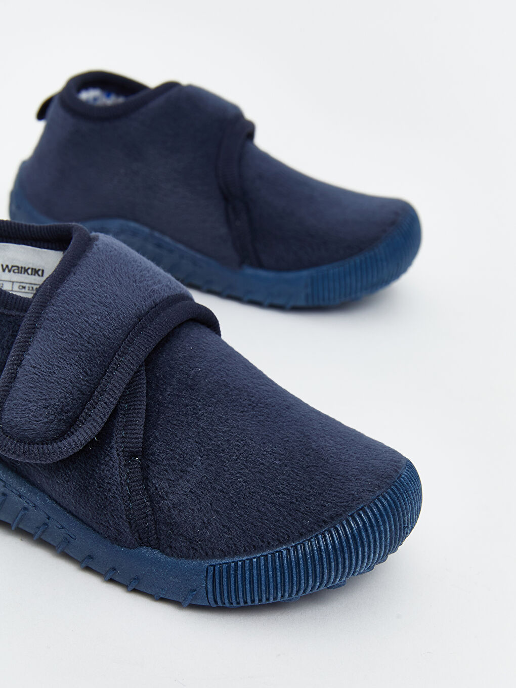دمپایی پسرانه دارای بسته شدن نوار چسب است. دارای آستر داخلی طرح دار، کلاهک دندانه دار و کف پا هستند.