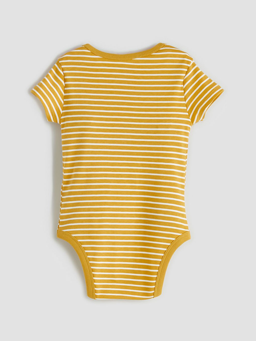 لباس بدن راه راه نوزاد پسر یقه زرد