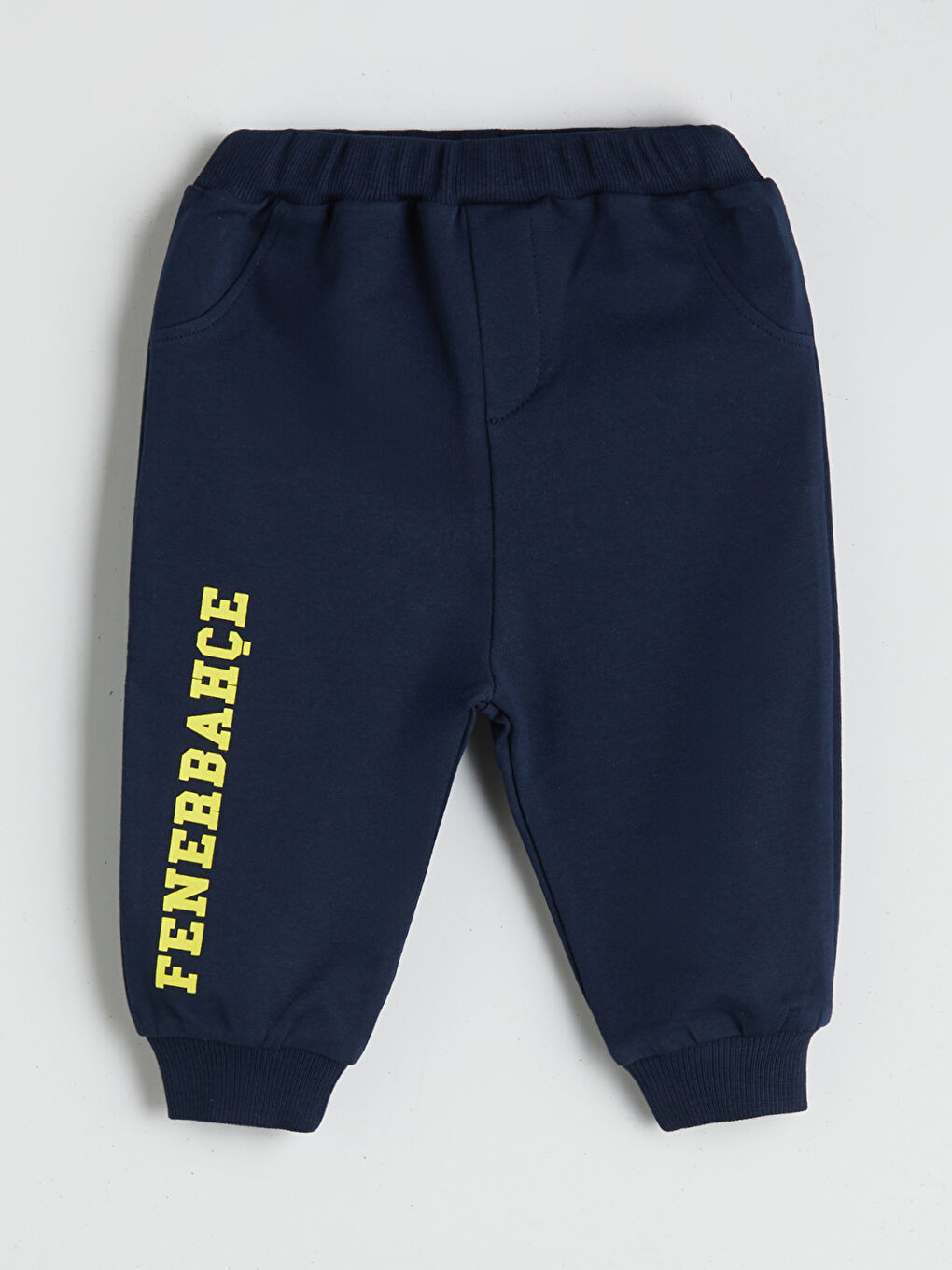 لباس ورزشی نوزاد پسر دارای مجوز فنرباغچه شامل یک یقه خدمه، گرمکن آستین بلند با بسته شدن محکم روی شانه ها و ته لباس ورزشی چاپ شده است.