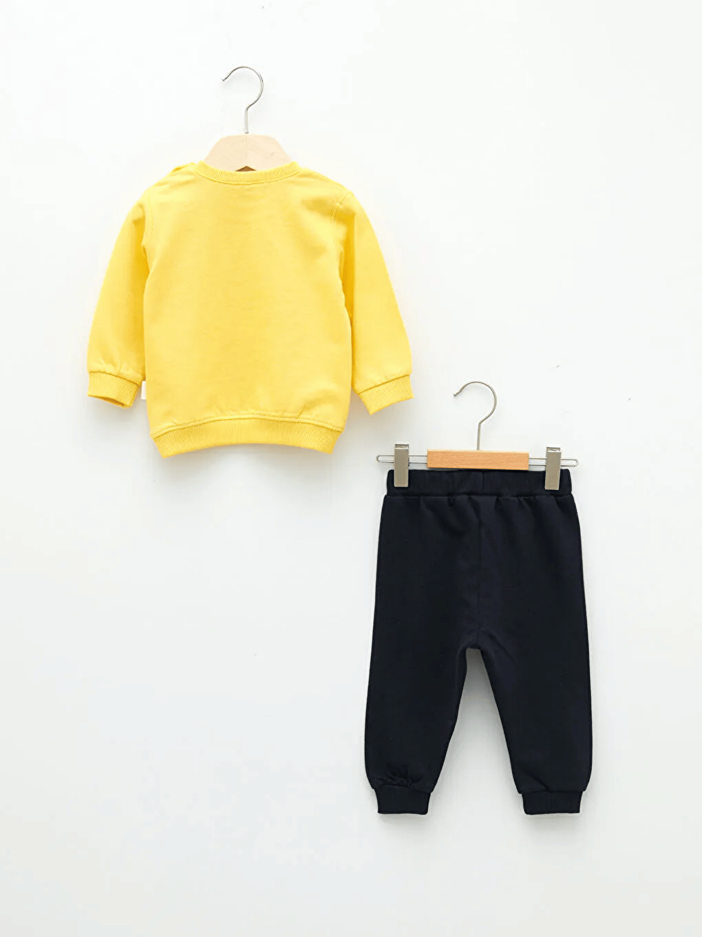 ست دو تکه سویشرت و گرمکن پسرانه با یقه زرد چاپ شده