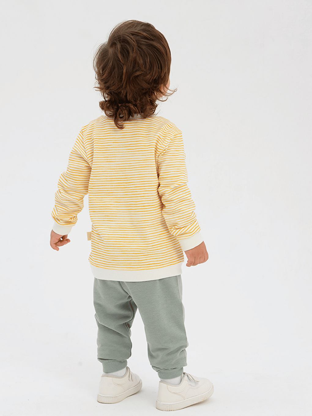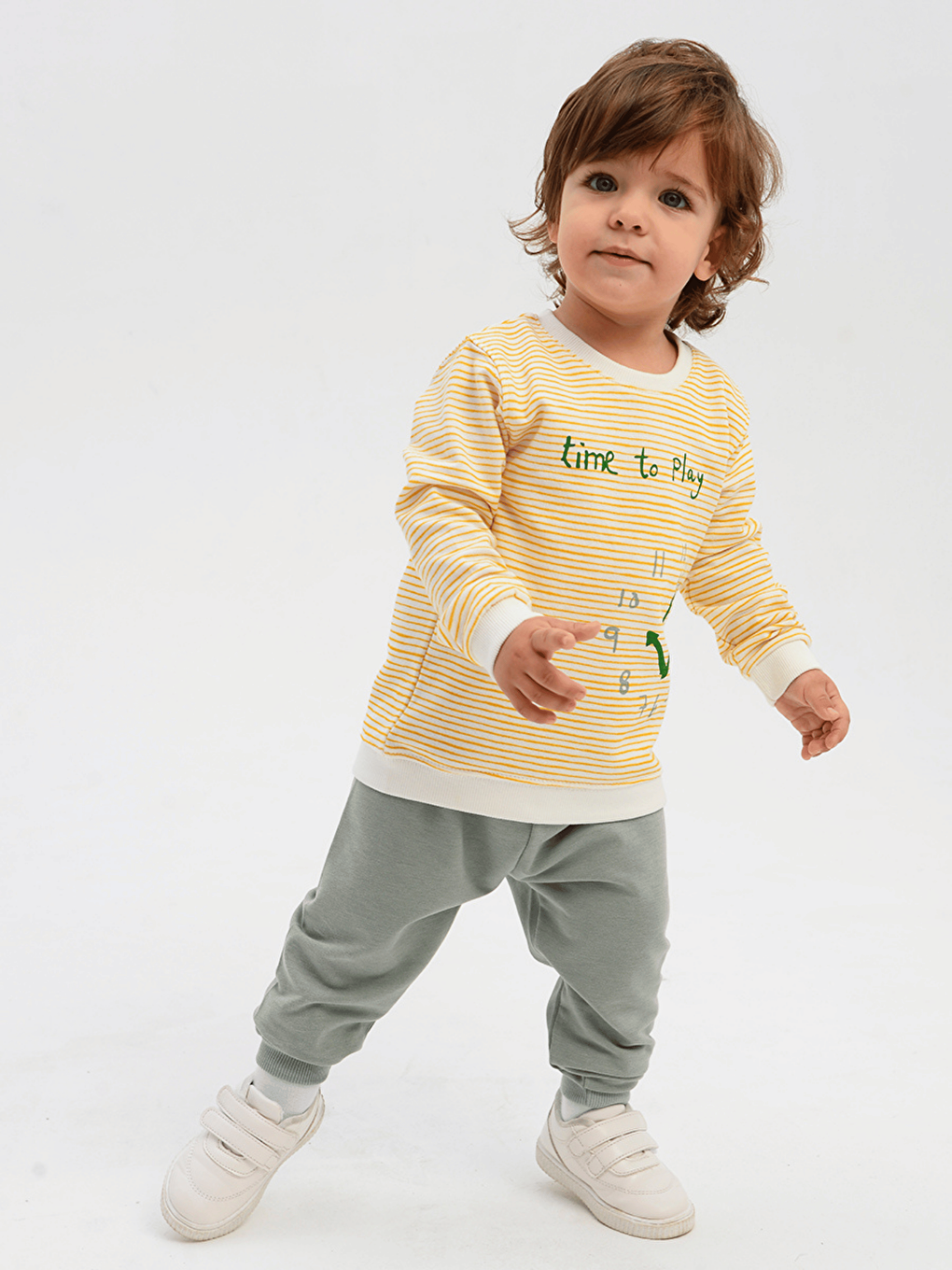 بسته 2 عددی سویشرت و کت و شلوار ورزشی نوزاد پسر با یقه زرد چاپ شده