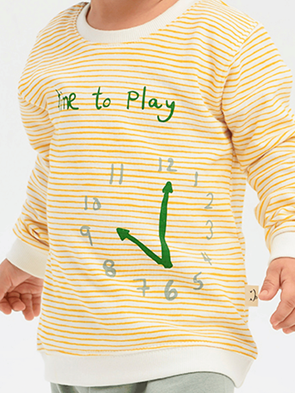 این لباس ورزشی نوزاد پسر که ترکیبی از راحتی و شیک برای بچه های کوچک است، به ویژه برای کودکانی طراحی شده است که می خواهند انرژی خود را در فصل بازگشت به مدرسه به جریان بیاندازند. سویشرت راه راه زرد و سفید، با ساعت و نوشته زیبای خود، نماد زمان بازی است، در حالی که پارچه نرم و 100% پنبه ای و زیره سبز پاستلی آن راحتی را برای قدم های کوچک فراهم می کند. ایده آل برای نوزادانی که در تمام روز در حال حرکت هستند، این لباس ورزشی با پارچه تنفسی ساخته شده است که پوست آنها را تحریک نمی کند و حداکثر راحتی را فراهم می کند. مناسب برای آماده سازی پیش دبستانی و پوشیدن روزمره، این لباس ورزشی نوزاد پسر یک انتخاب عالی برای خرید از مدرسه است.