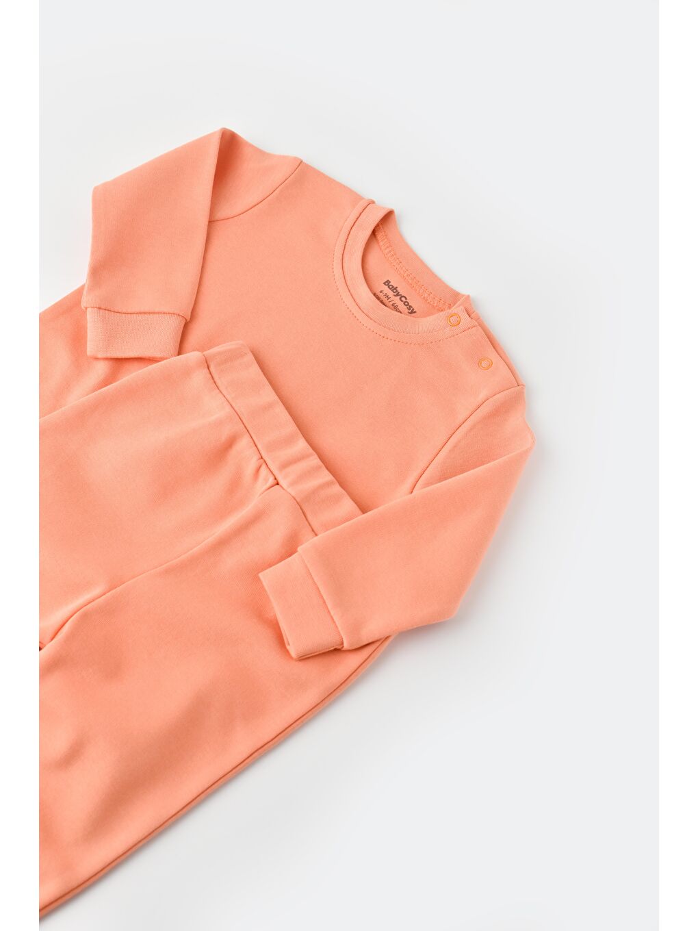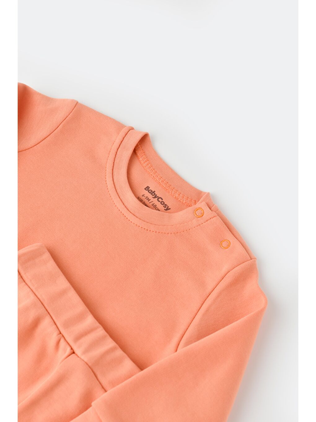 این لباس ورزشی بچه گانه نخی نارنجی با بافت نرم و تناسب راحت خود راحتی را برای کوچولوها فراهم می کند. رویه دارای طراحی دکمه‌ای روی شانه‌ها است تا لباس پوشیدن راحت باشد. یقه خدمه و آستین های بلند آن را هم برای پوشیدن روزمره و هم برای بیرون از منزل ایده آل کرده است. قسمت پایینی با کمربند الاستیک با بدن کودک سازگار می شود، در حالی که لبه های آجدار امکان حرکت را آسان می کند. پارچه پنبه ای قابل تنفس آن برای پوست های حساس ملایم است. این ست برای پوشیدن روزمره و بیرون رفتن مناسب است، این ست با طراحی ساده و رنگ های پر جنب و جوشش برای نوزادان دختر و پسر یونسکس است.