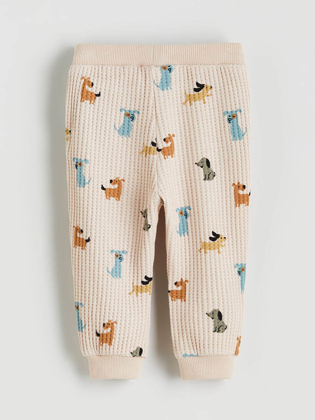 شلوار گرمکن بچه پسر که از پارچه ترکیبی پنبه ای ساخته شده است، طرحی با چاپ سگ دارد.