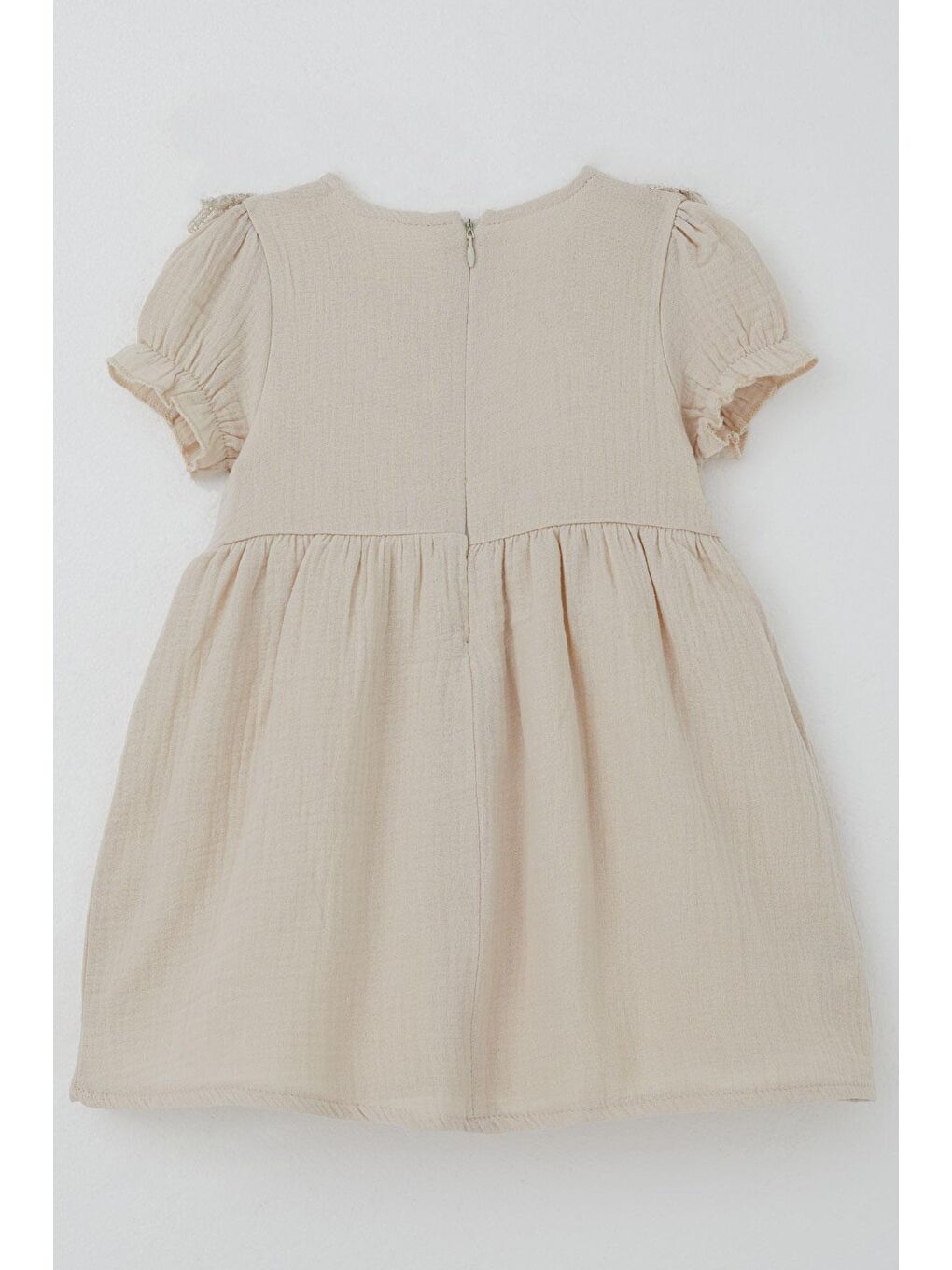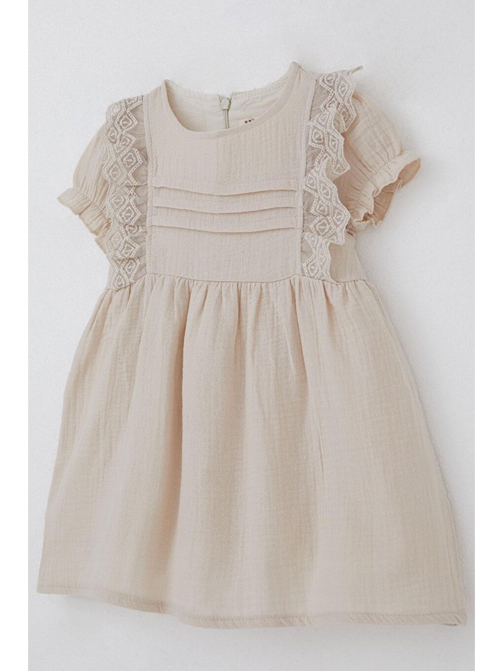 لباس بچه گانه دخترانه با جزئیات گیپور روی شانه و آستین های کشسان، بژ (9 ماهگی تا 3 سالگی)