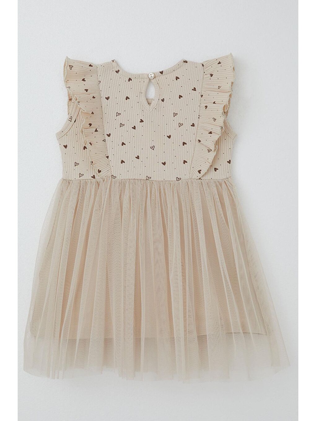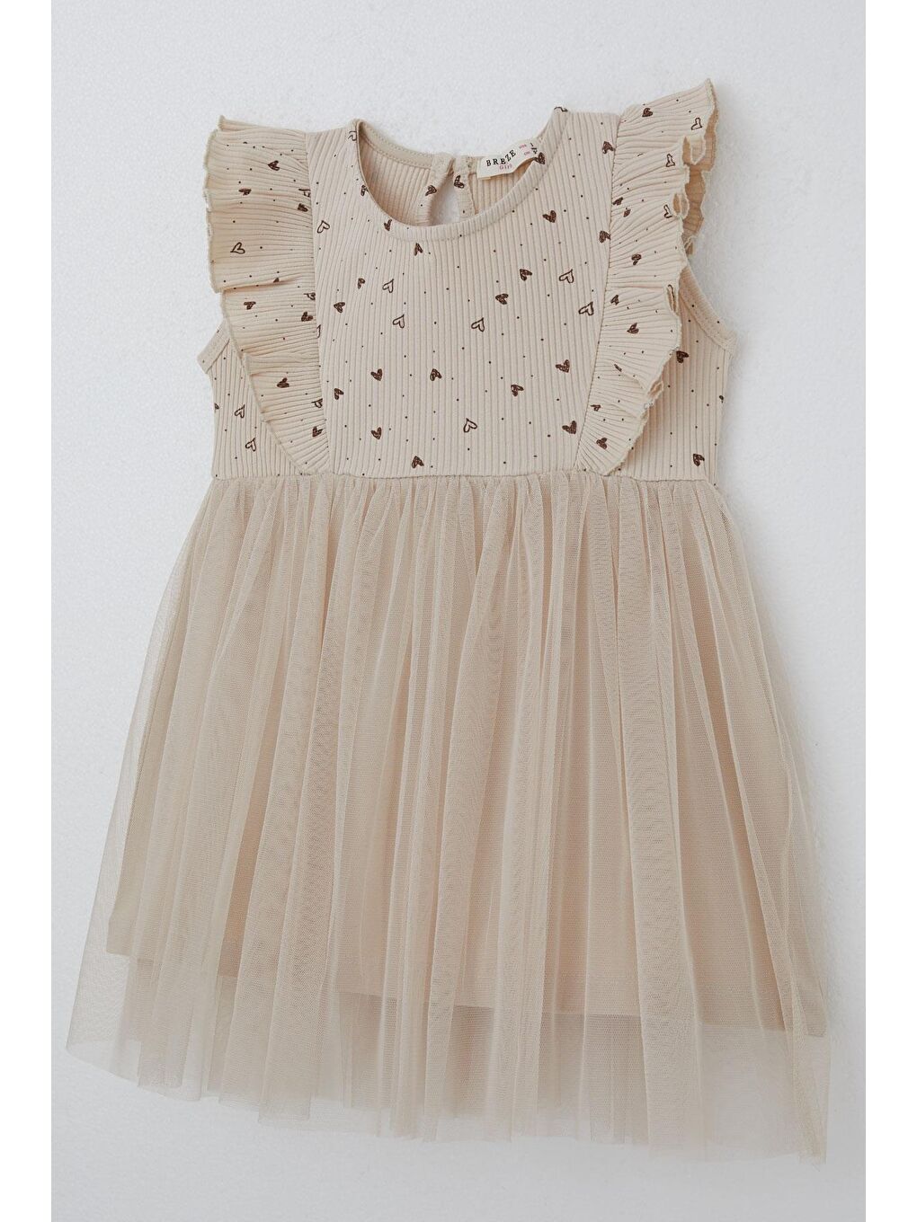 لباس بچه گانه دخترانه، توری و روفله طرح قلب، بژ (۹ ماه تا ۳ سال)