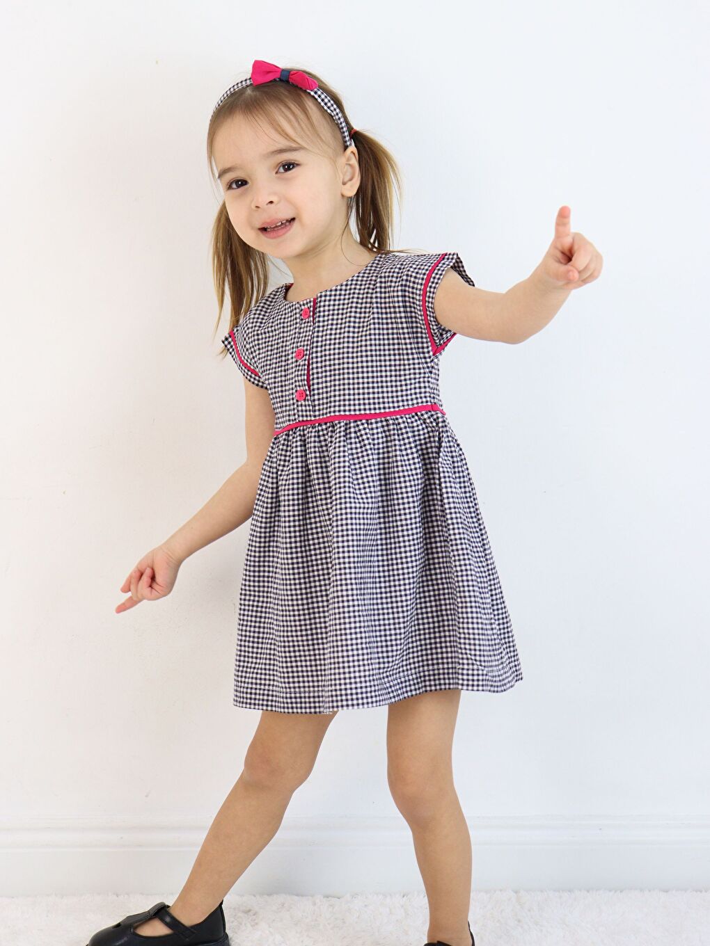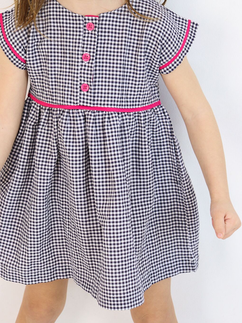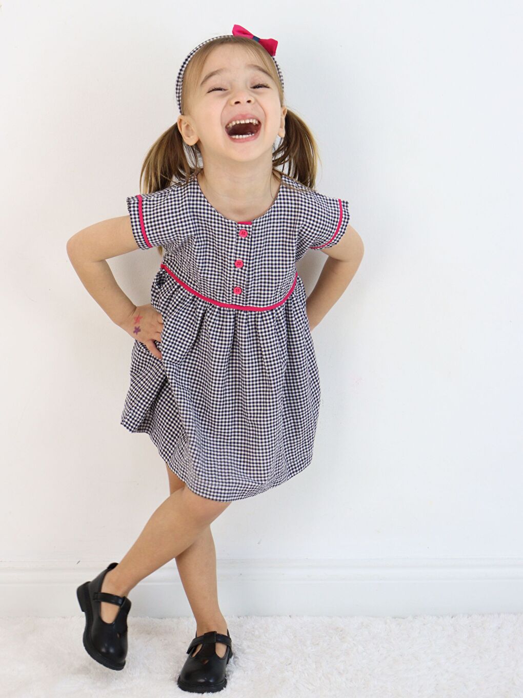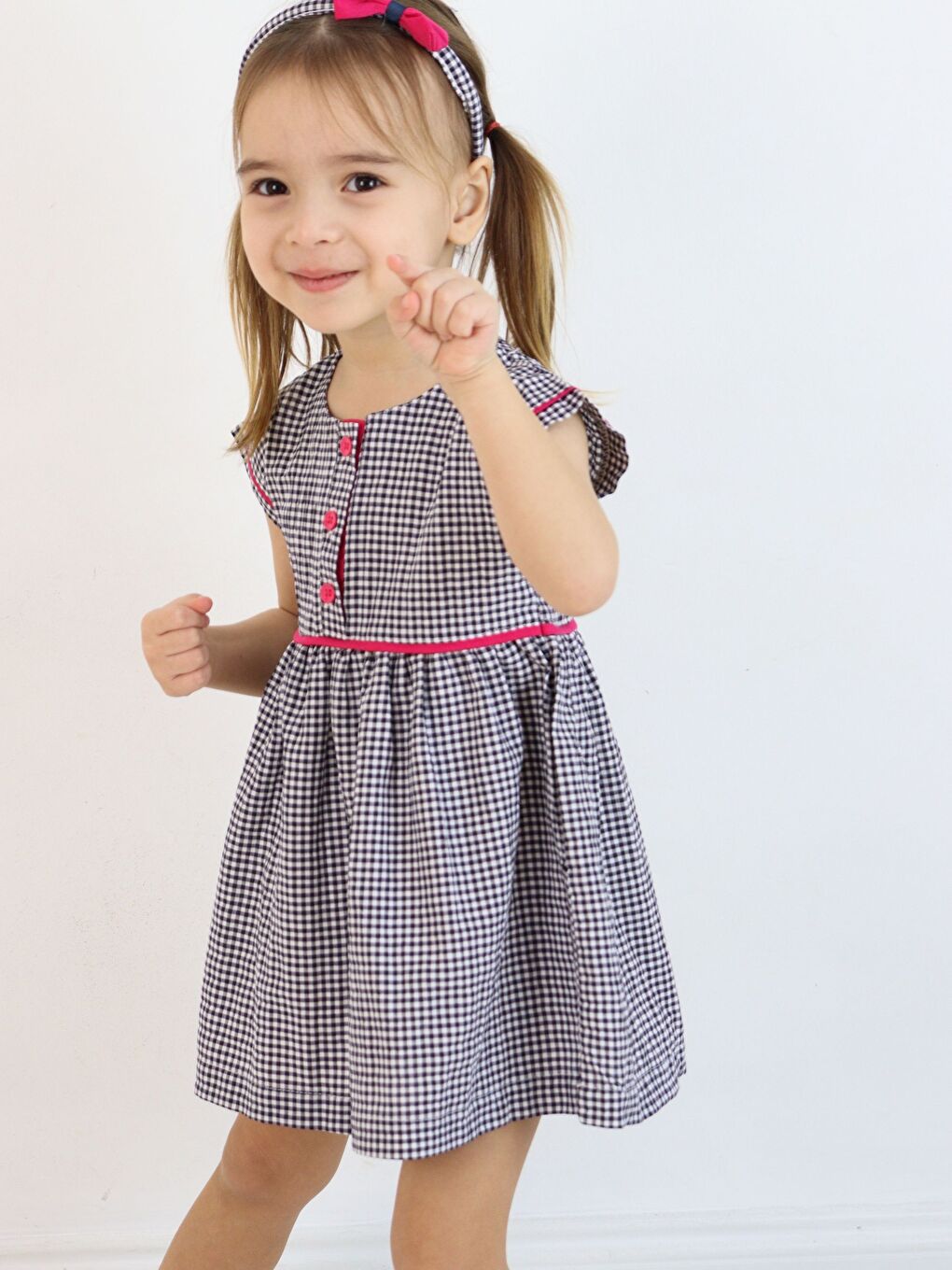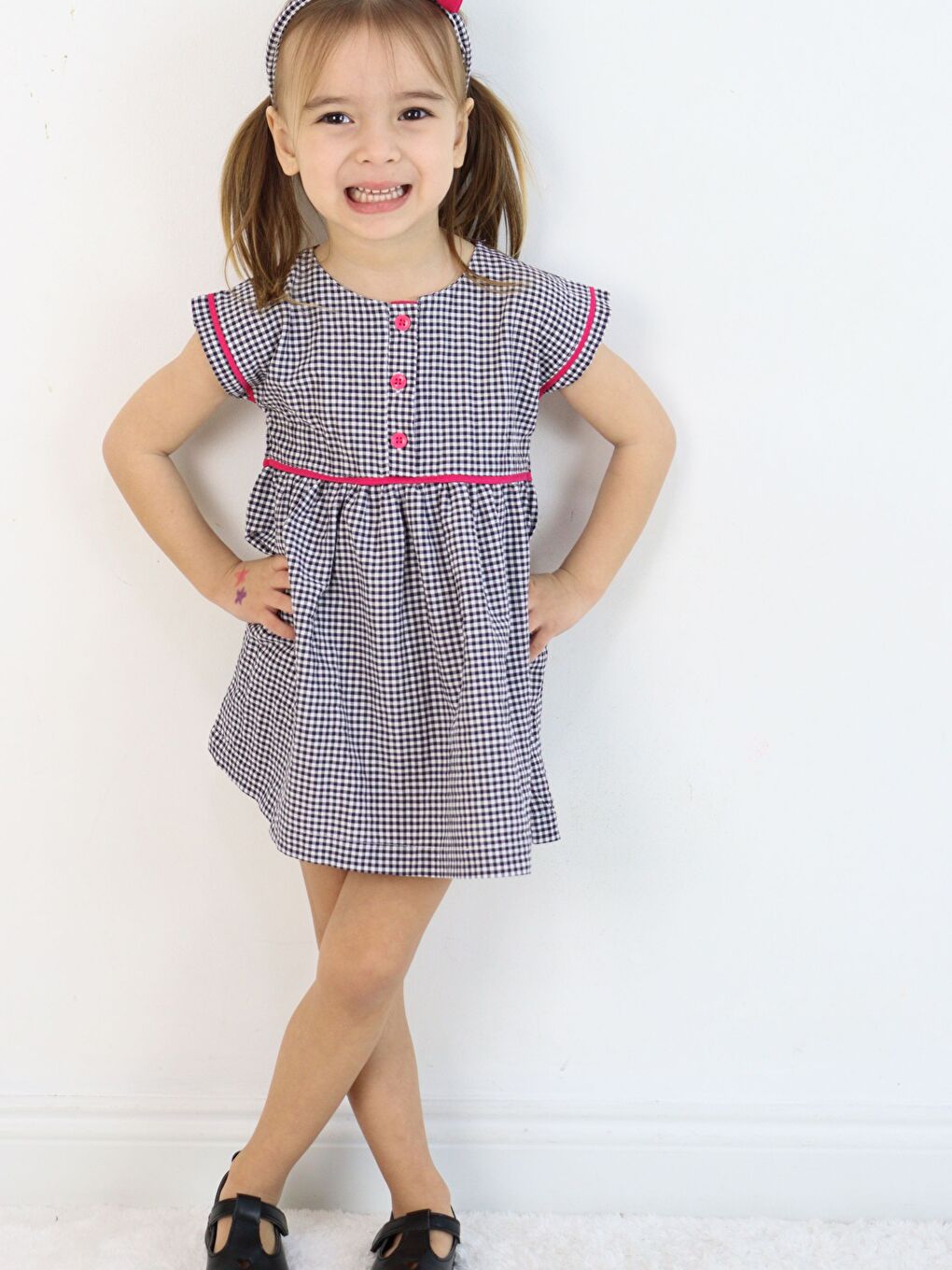 این لباس جلو دکمه دار دارای طرح چهارخانه شیک است. پارچه 100% نخی آن قابل تنفس و راحت است.