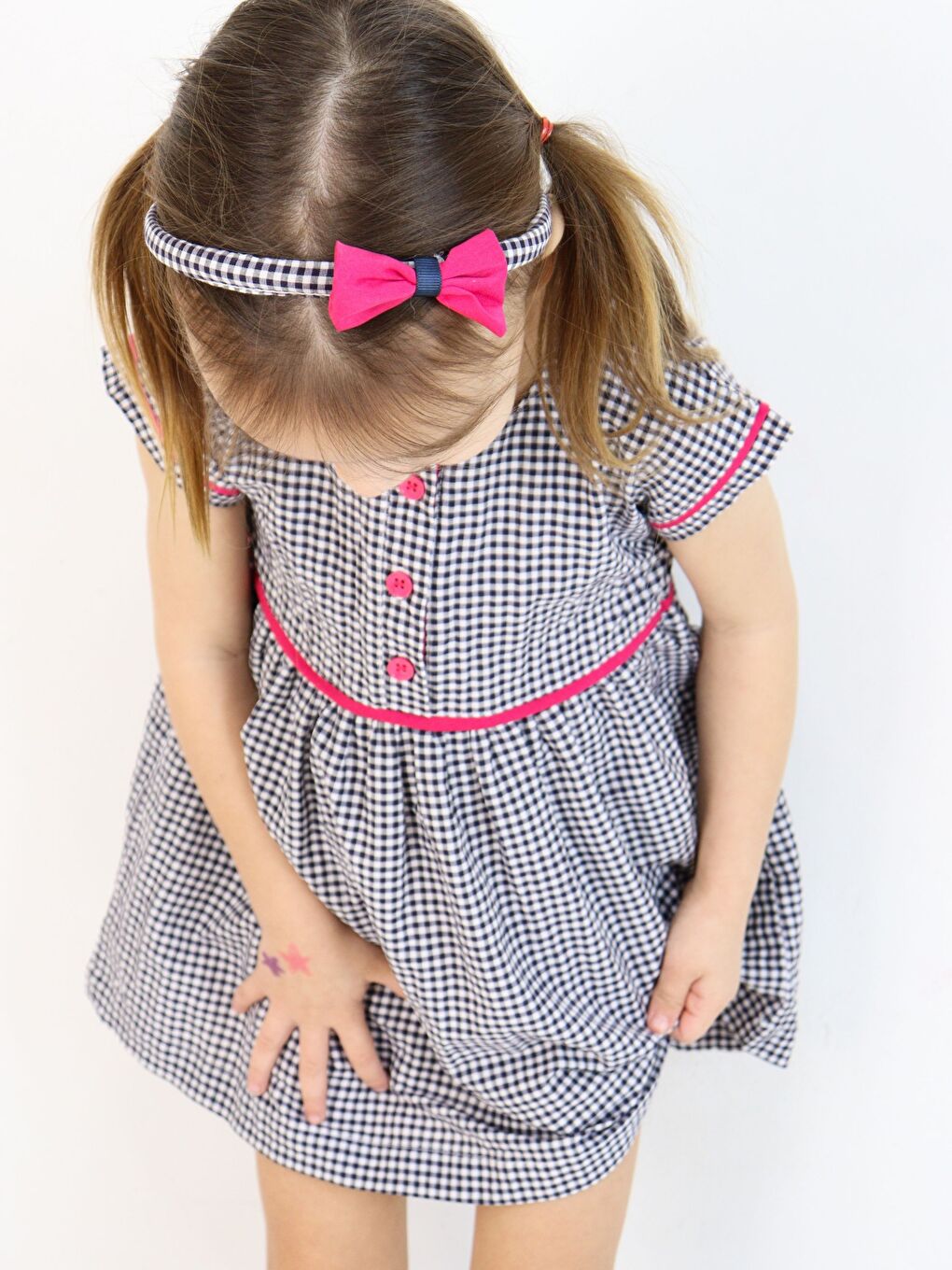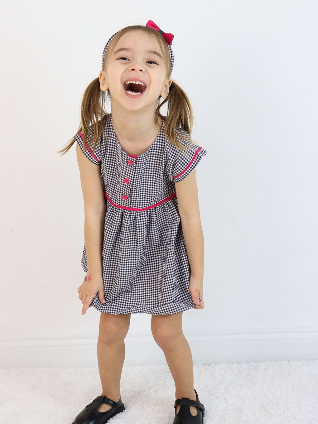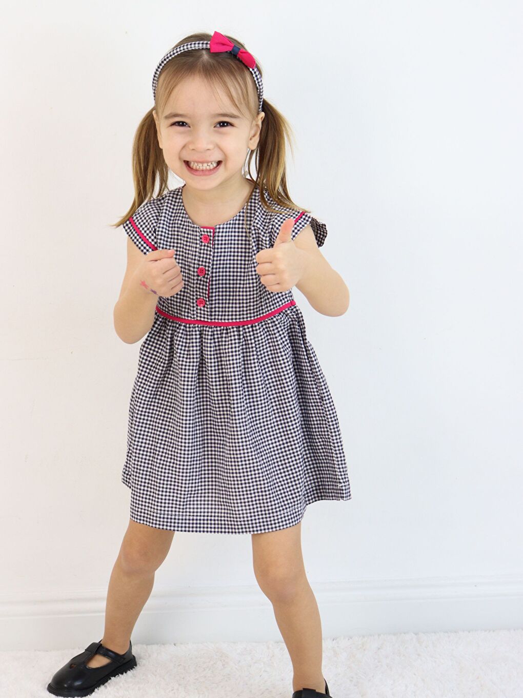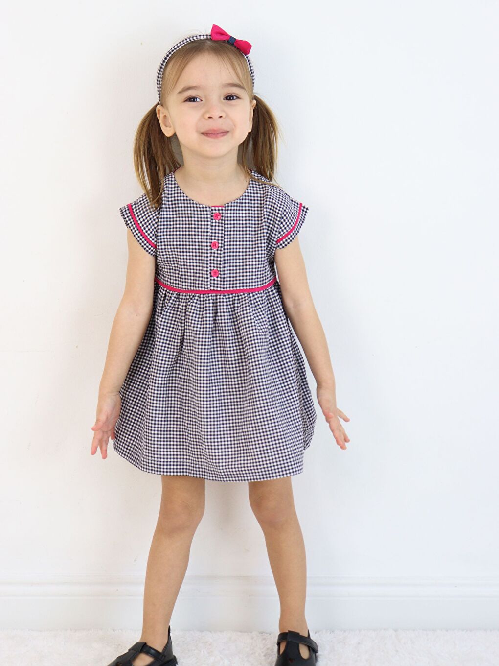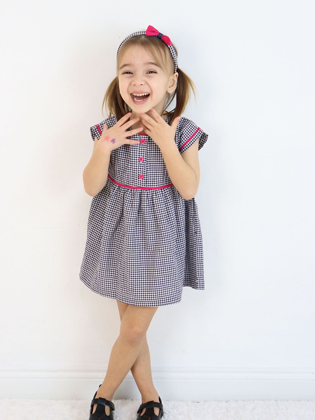 این لباس جلو دکمه دار دارای طرح چهارخانه شیک است. پارچه 100% نخی آن قابل تنفس و راحت است.
