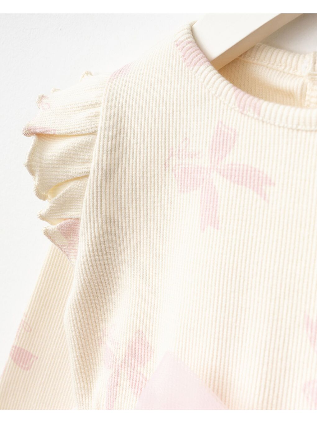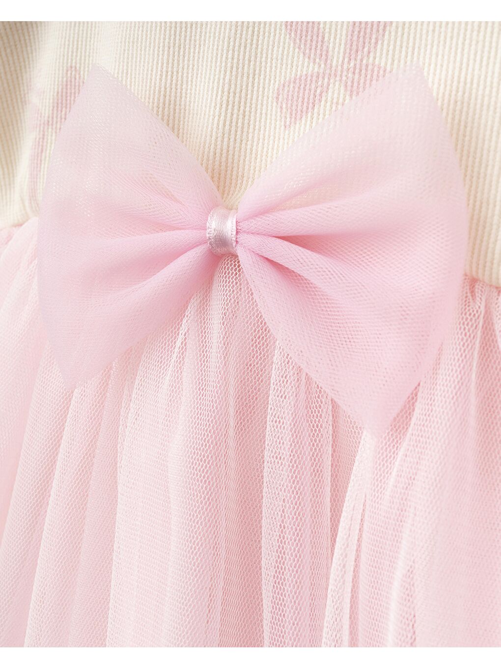 لباس دخترانه نخی اکرو صورتی پاپیونی – دنده آستین بلند