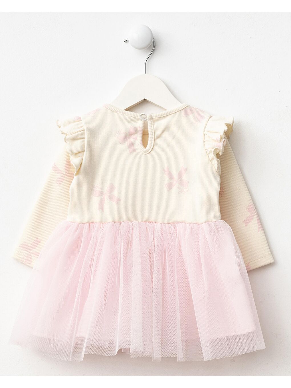 این لباس دخترانه شیک از پارچه دنده ای نخی ساخته شده است تا حسی نرم و انعطاف پذیر داشته باشد. نیم تنه با پاپیون های صورتی روی زمینه ای کروم تزئین شده است. جزئیات رفل بر روی شانه ها و یک پاپیون توری بزرگ در کمر، جلوه ای از زرق و برق می بخشد. دامن پایین با لایههایی از تور صورتی طراحی شده است و دارای آستری راحت است. این یک انتخاب ایده آل برای تولد، رویدادهای خاص، و عکس های خاص است. این لباس با ترکیبی از ظرافت و راحتی، یک هدیه عالی است.
