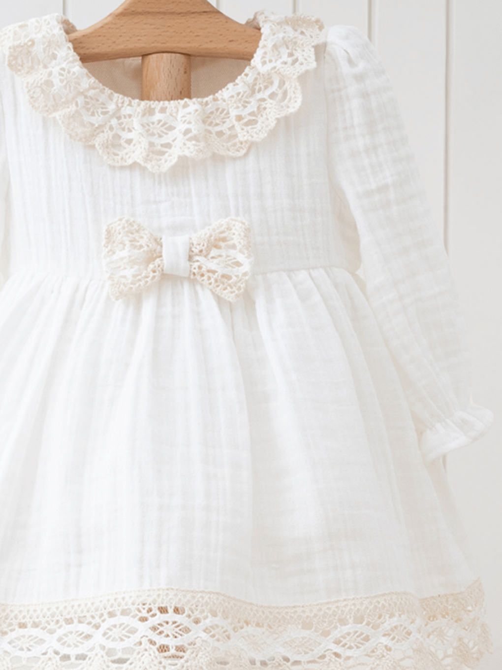 لباس دخترانه دخترانه توری آستین بلند یقه اکرو