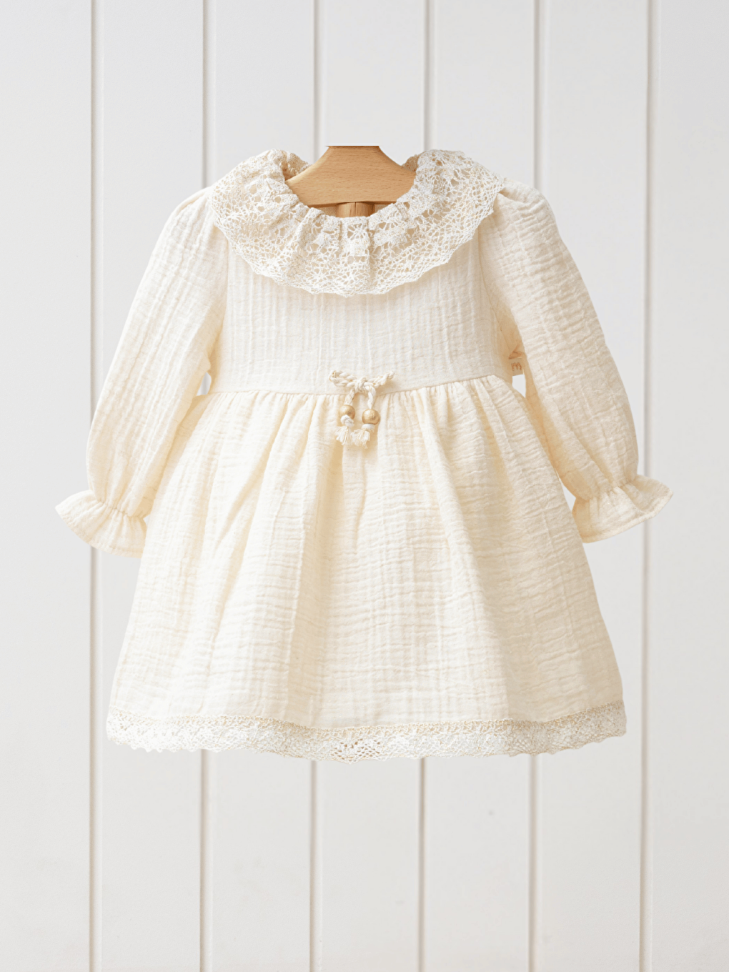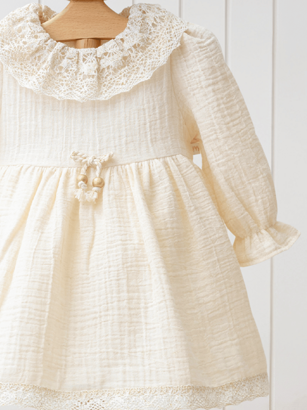 لباس دخترانه دخترانه توری آستین بلند یقه بژ