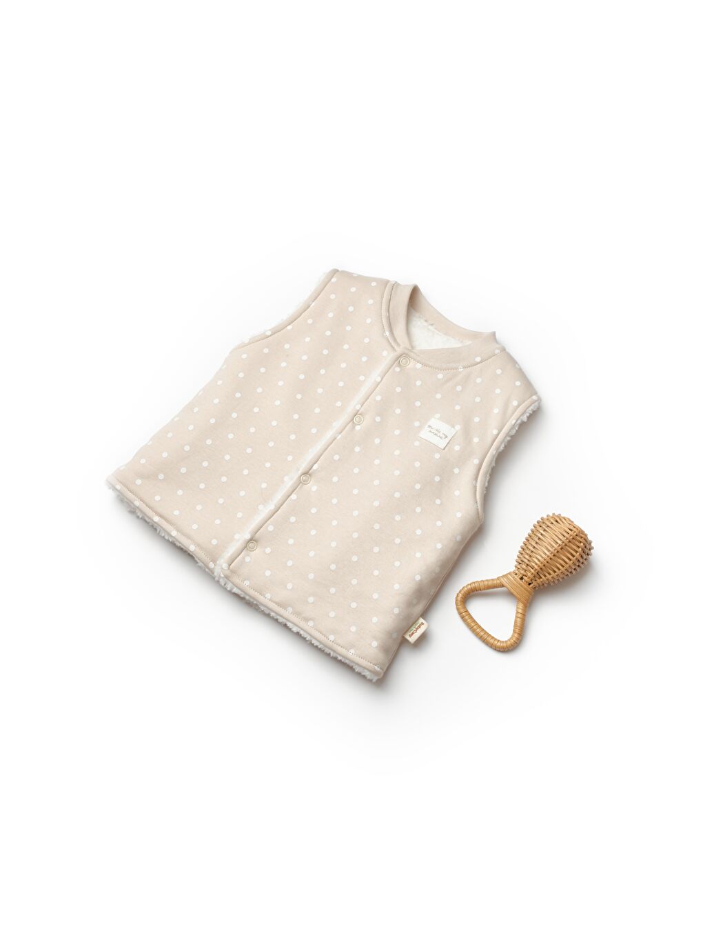 جلیقه مخمل دار پنبه ای ارگانیک بژ لهستانی یونیسکس نوزاد