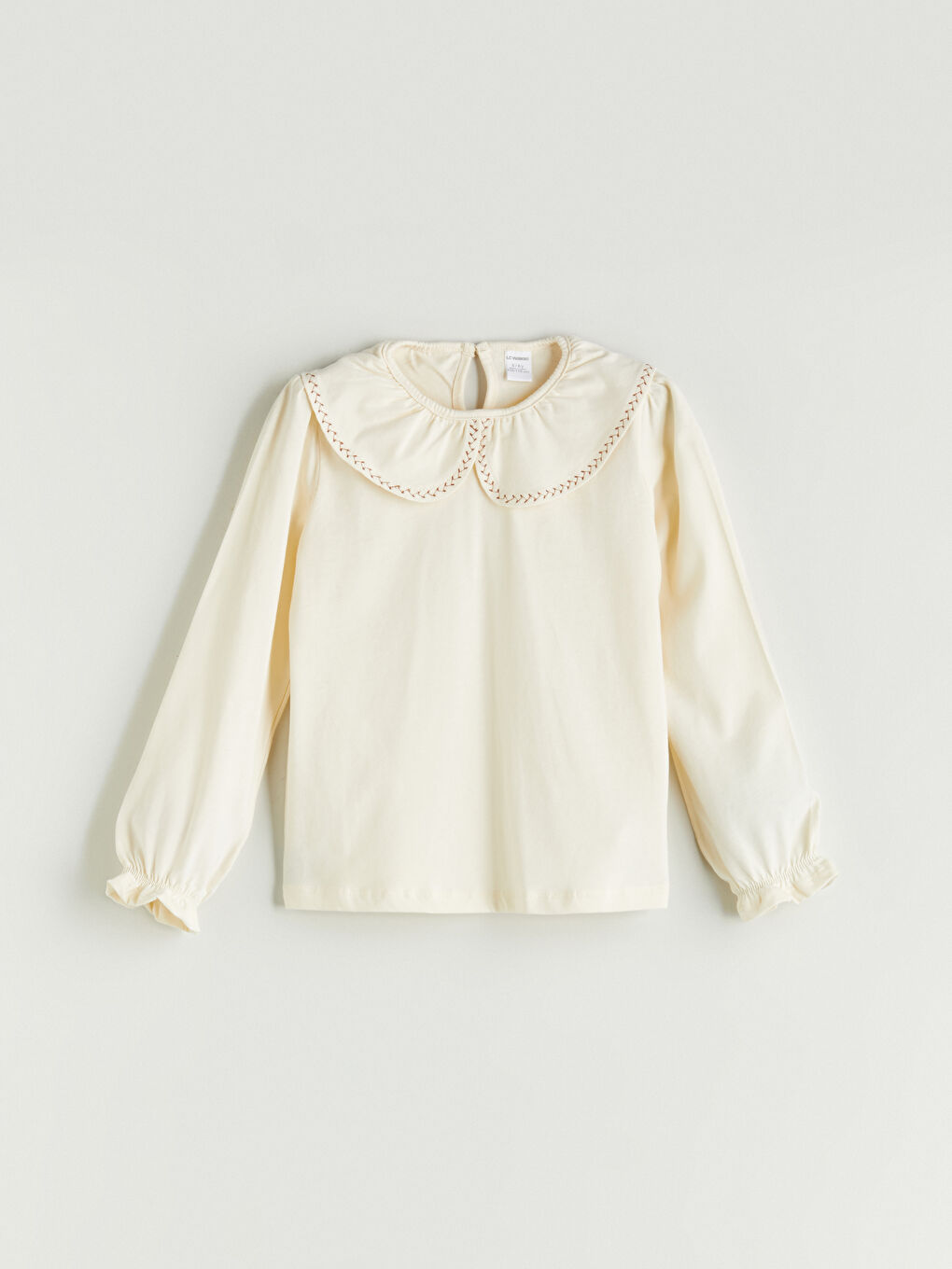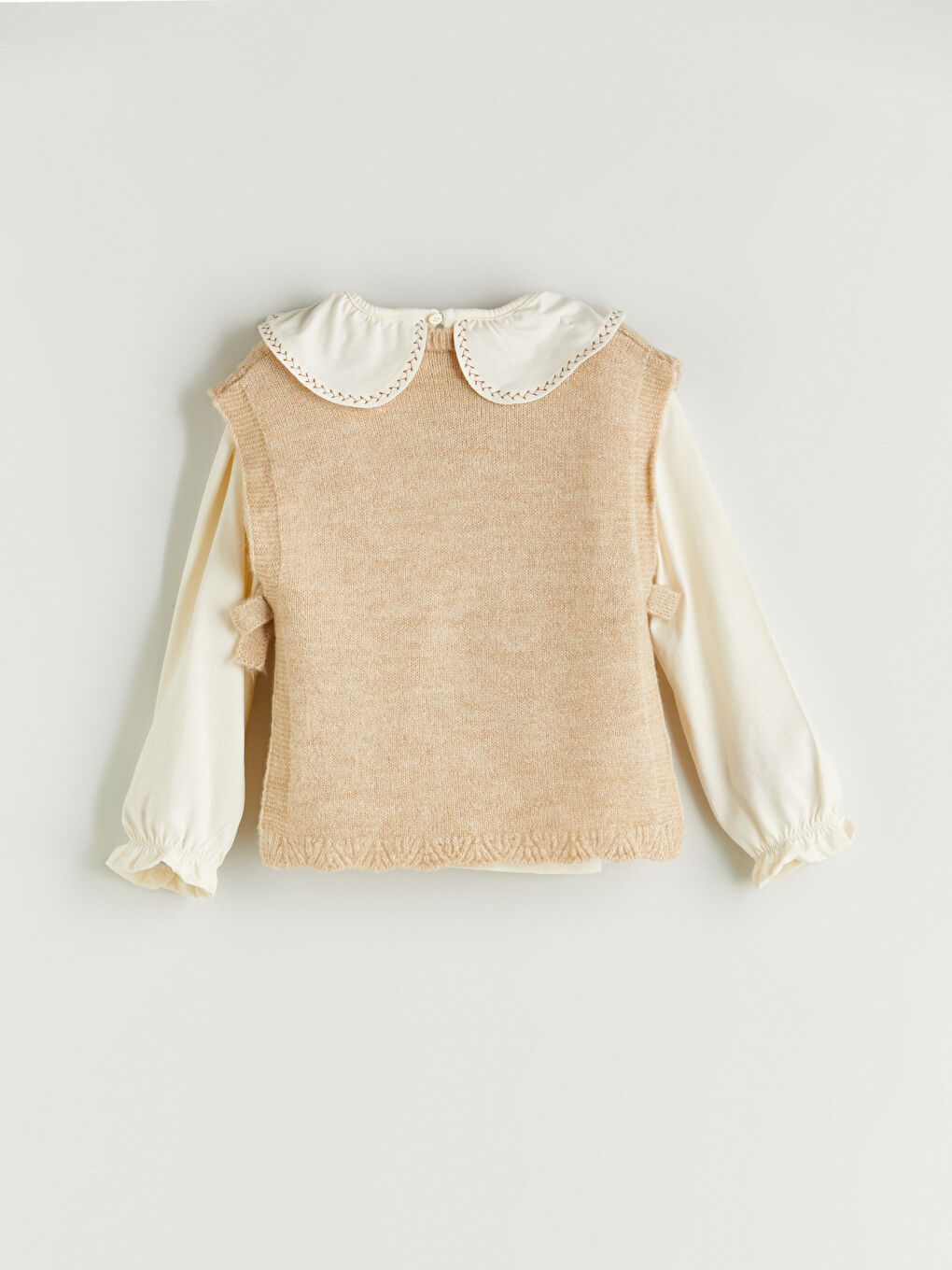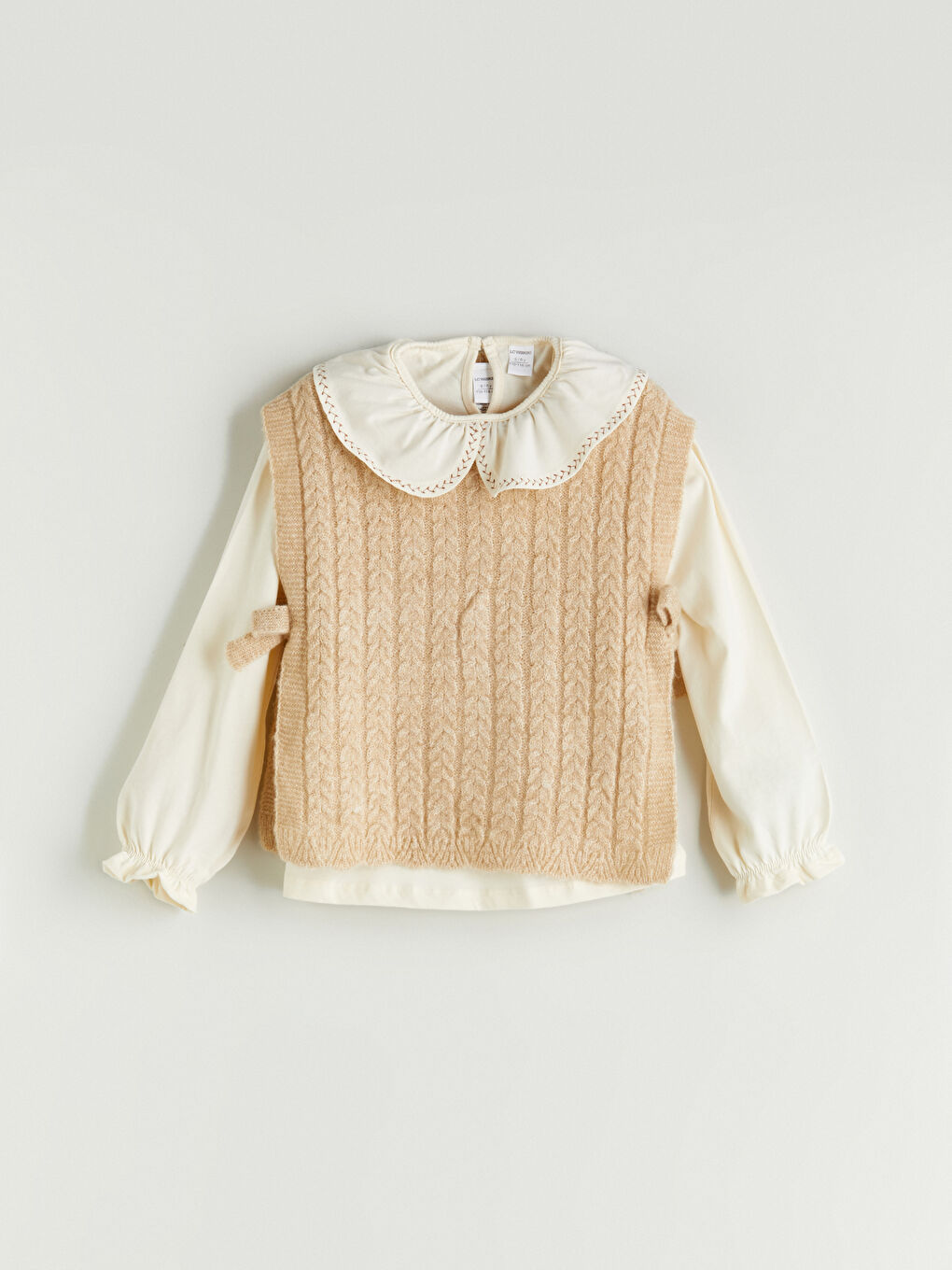 ست بلوز، ژاکت و شلوار بافتنی دخترانه Ecru یقه بچه‌گانه