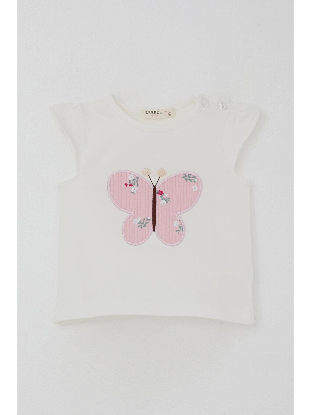 ست شورت نوزادی دخترانه با اکسسوری دکمه گلدوزی پروانه گلدوزی در اکرو (6 ماهه تا 2 سال)