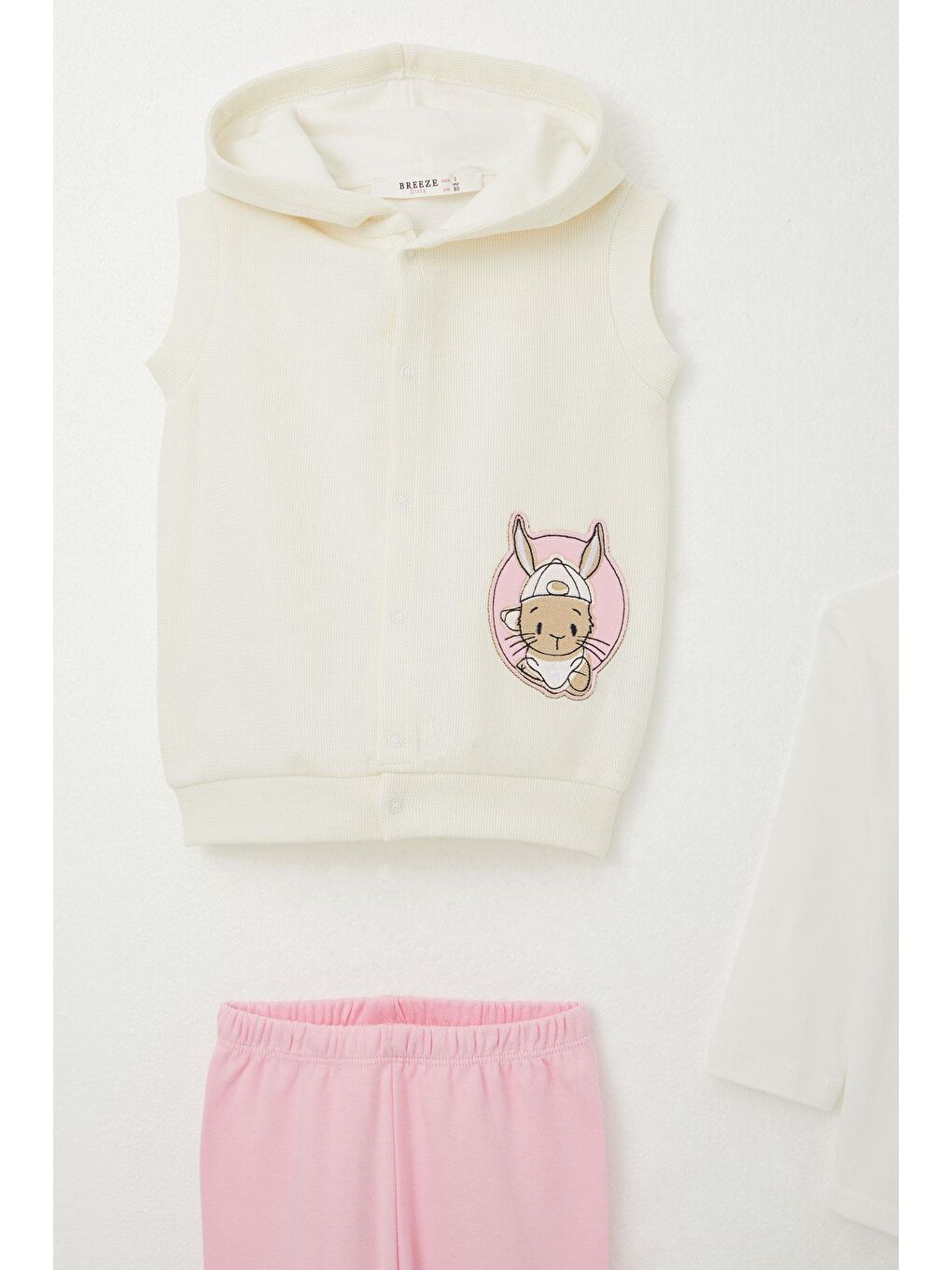 ست 3 تکه بدنه دخترانه اکرو با گلدوزی خرگوش ناز، کرم (4 ماهه تا 1 سال)