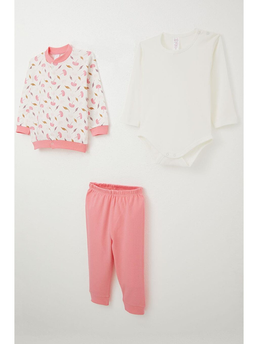 ست 3 تکه بادی دختر بچه با طرح گلدار سفید (4 ماهه تا 1 سال)