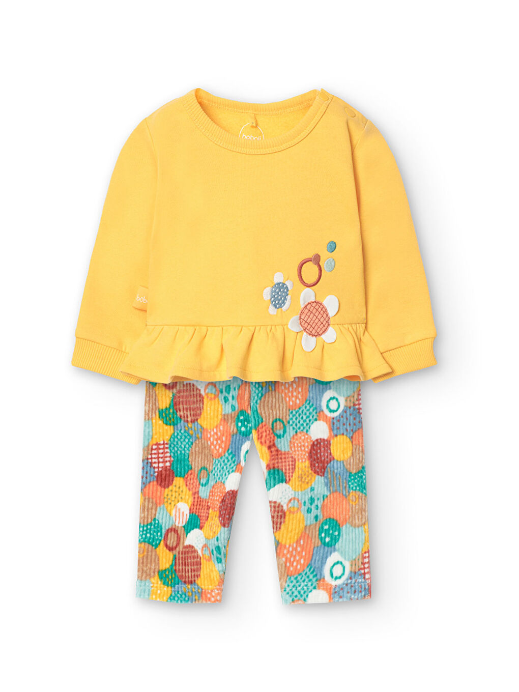 این ست دو تکه دوست داشتنی که از پارچه بافته شده بسیار نرم ساخته شده است، برای دنج نگه داشتن کودک شما در ماه های سرد بسیار عالی است. این شلوار خال خالی در سایزهای 1 ماهه تا 2 ساله موجود است، این شلوار خال‌خالی جالب و دوست‌داشتنی با یک پلیور با طرح گل ست می‌شود. این ست شیرین با یقه گرد و آستین های بلند راحتی و محافظت بیشتری را برای کودک شما فراهم می کند. بسته شدن محکم روی شانه ها باعث می شود ژاکت به راحتی پوشیده و درآورده شود. این یک راه کاربردی و جذاب برای آماده کردن کودک شما برای ماه های سردتر است.