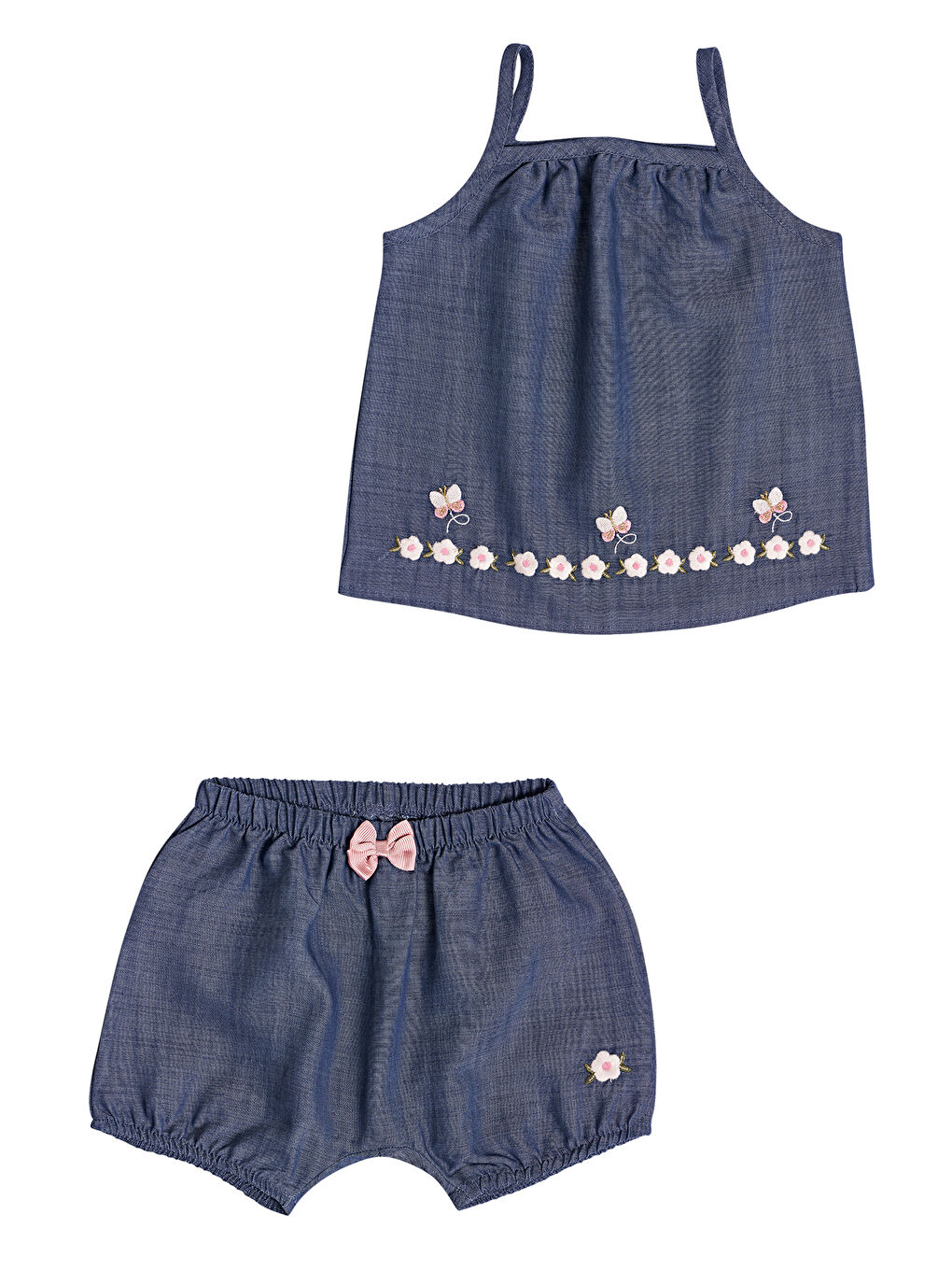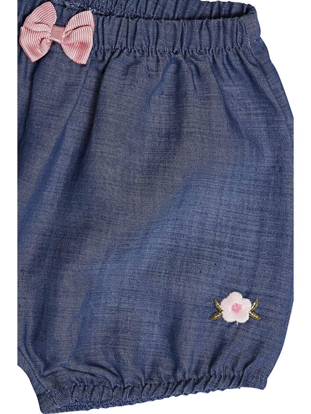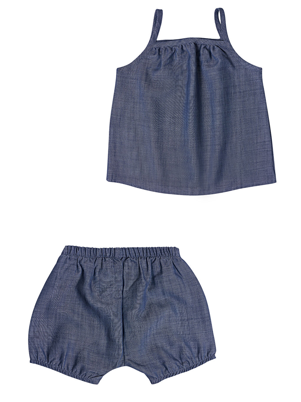بلوز دارای طرح پروانه ای زیبا است. کمر و پاهای شلوارک برای راحتی بیشتر کش دار هستند. جزئیات پاپیونی در قسمت کمر شلوارک نیز روی آستین بلوز به چشم می خورد.