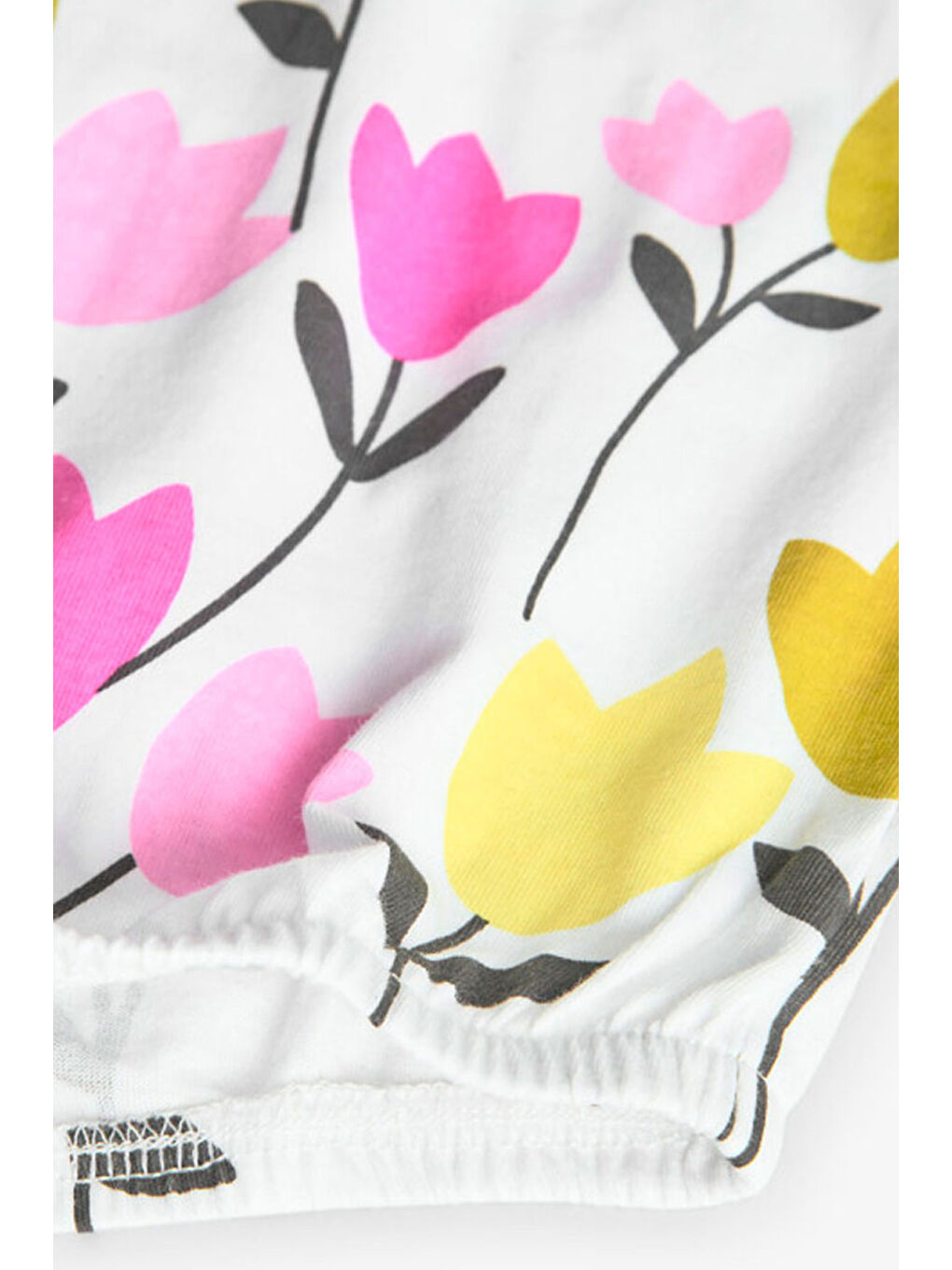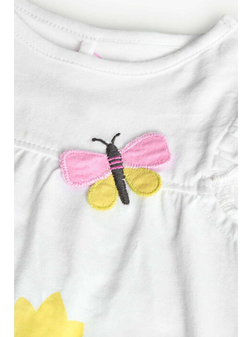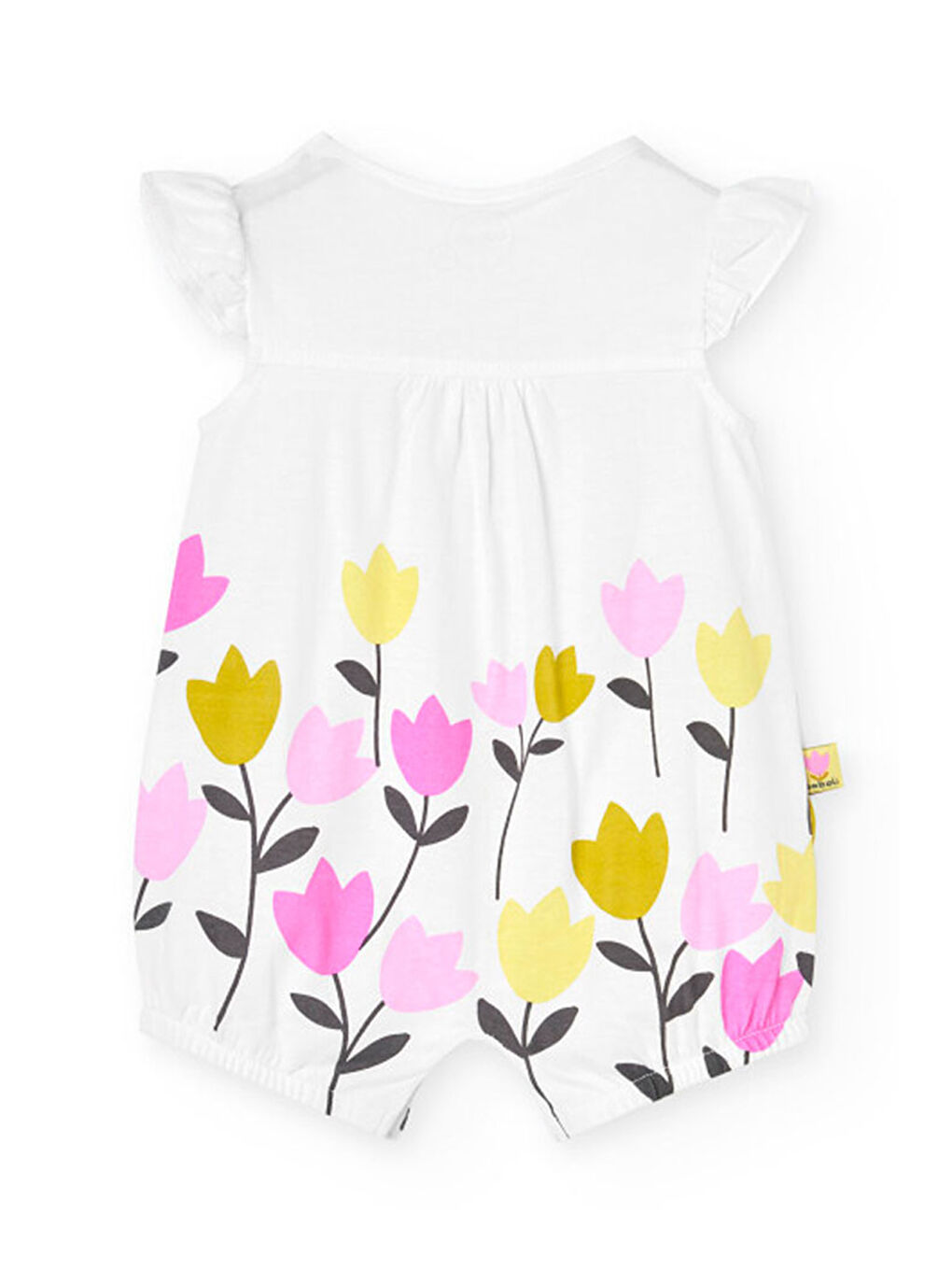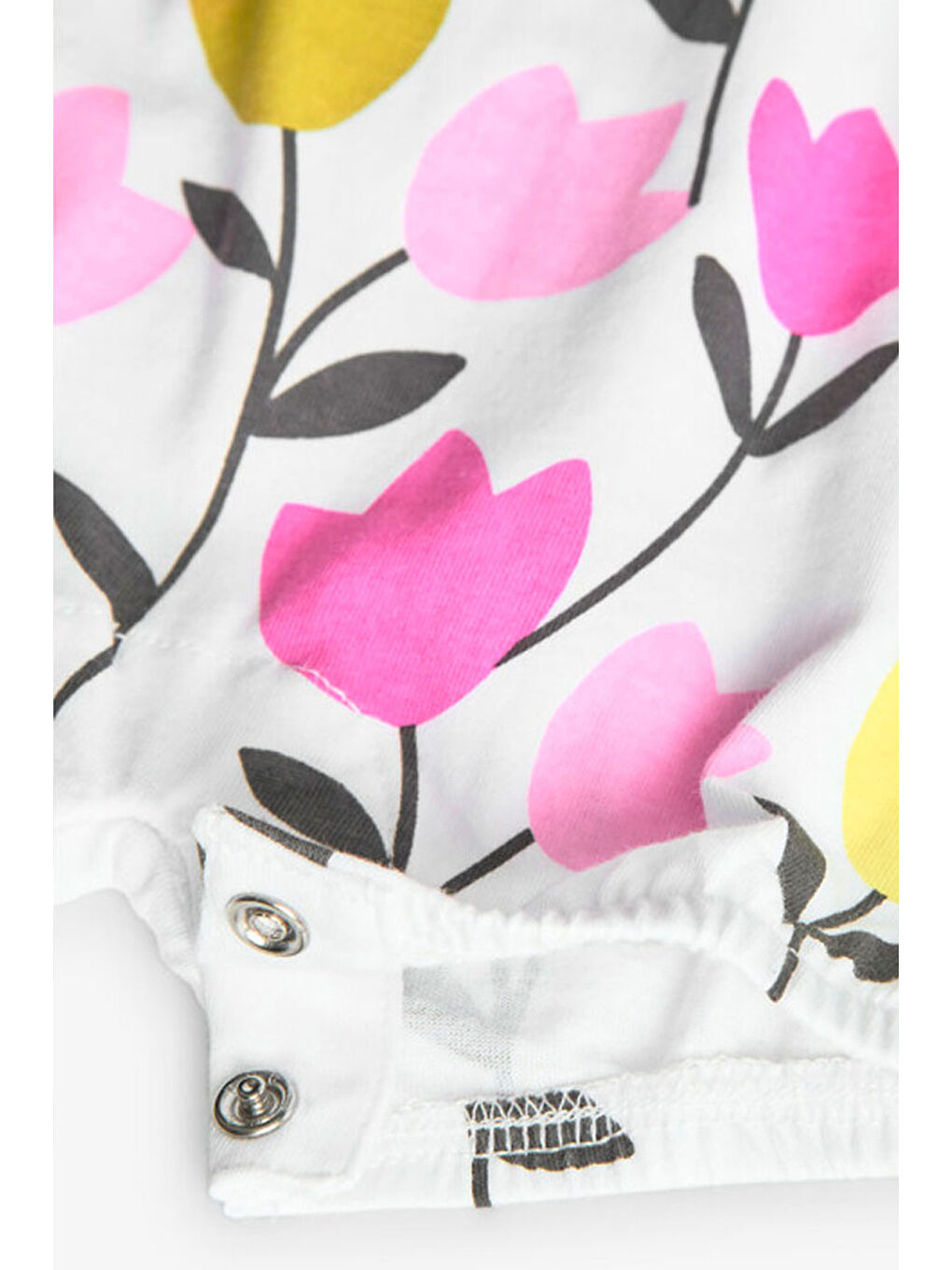این روکش بافتنی مناسب برای روزهای آفتابی، هم زیبا و هم راحت است. طرح سفید آن دارای چاپ گلی شاد در سایه های صورتی، زرد و سبز، همراه با جزئیات پروانه دوزی شده است. ساخته شده از مواد نرم و قابل تنفس، به خنک و راحت کودک شما کمک می کند. در سایزهای صفر ماه تا 2 سال موجود است. با سبک سرگرم کننده و پر جنب و جوش خود، این رومپر را می توان به راحتی با ژاکت یا لوازم رنگارنگ برای ظاهری زیبا تزئین کرد.