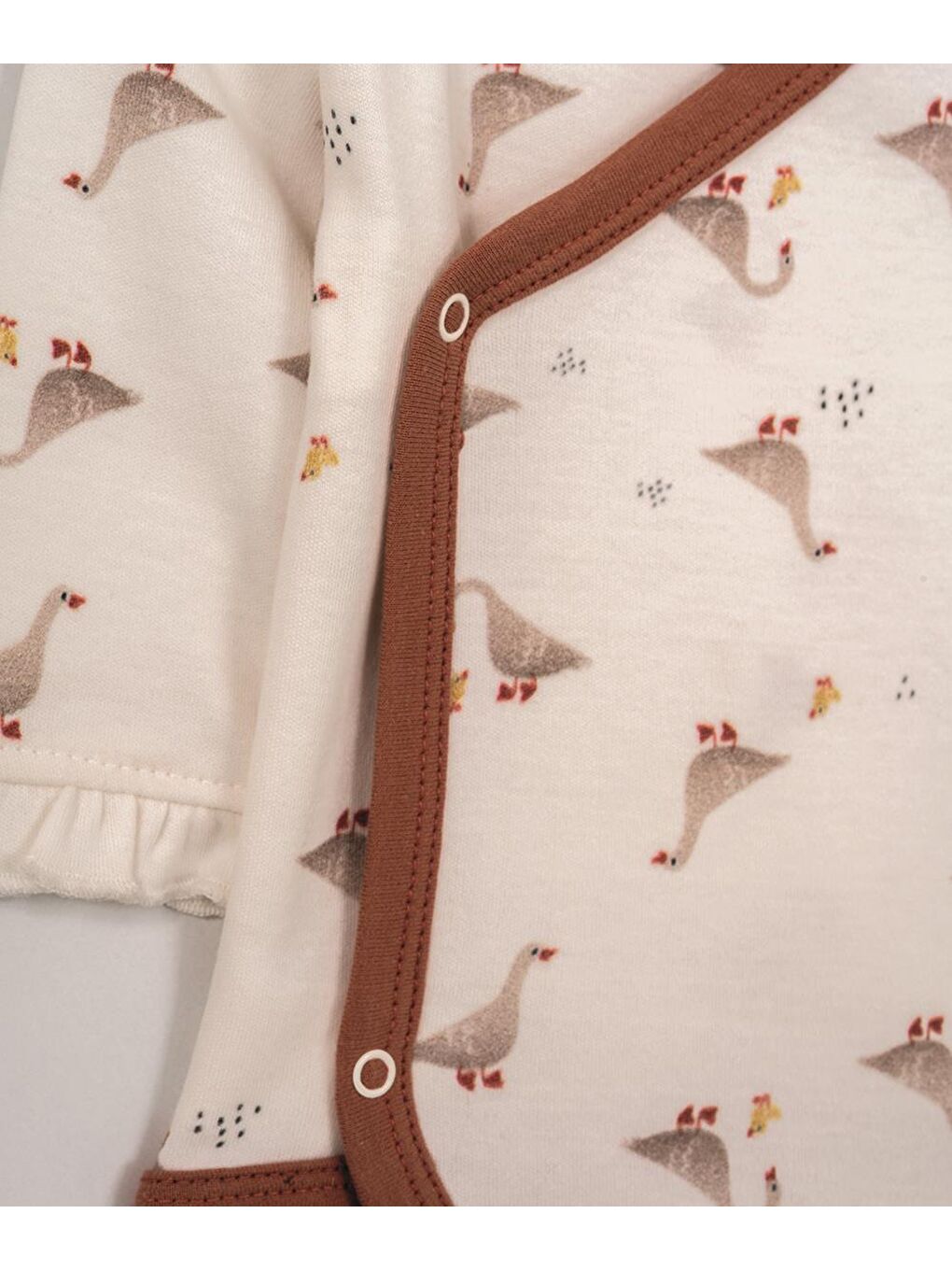 ست بدنه دو سینه تم Happy Duck با طرح اردک شایان ستایش و پارچه نرم، رنگی به کمد لباس کودک شما می بخشد. بسته شدن دو سینه (مورب) لباس پوشیدن را به ویژه برای نوزادان و نوزادان با پوست حساس آسان می کند.