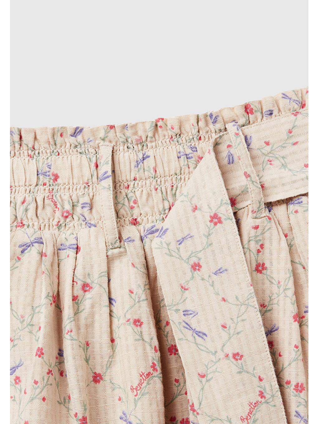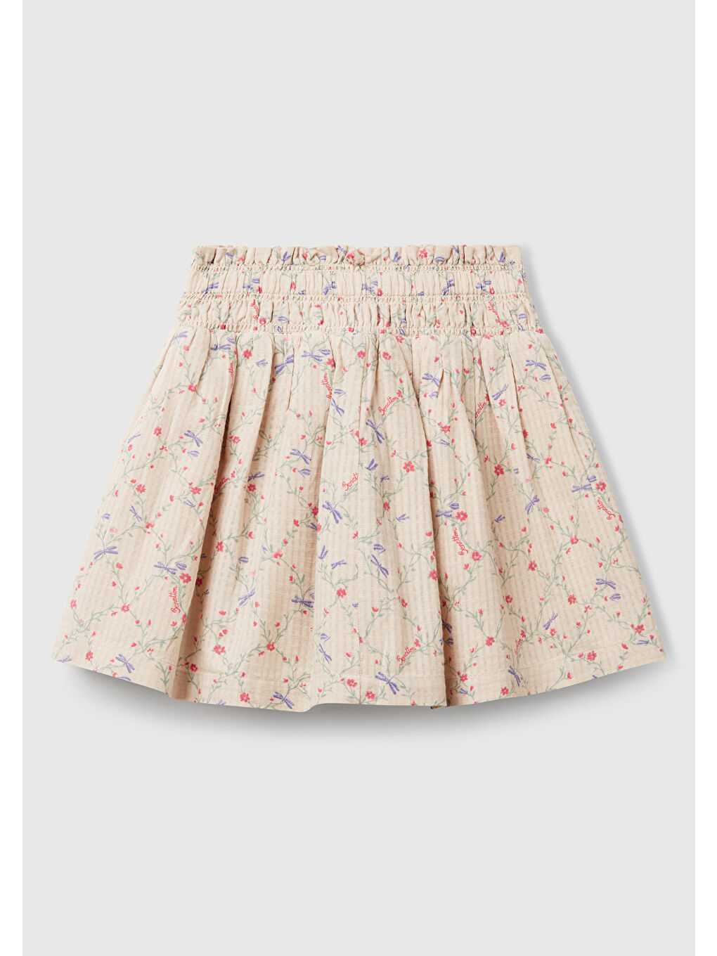 دامن کمربند الاستیک دخترانه Ecru Seersucker طرح گلدار