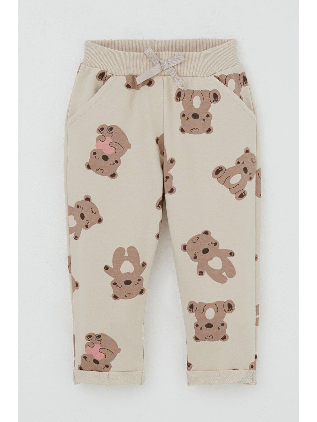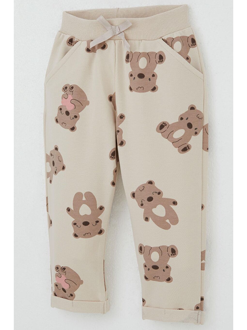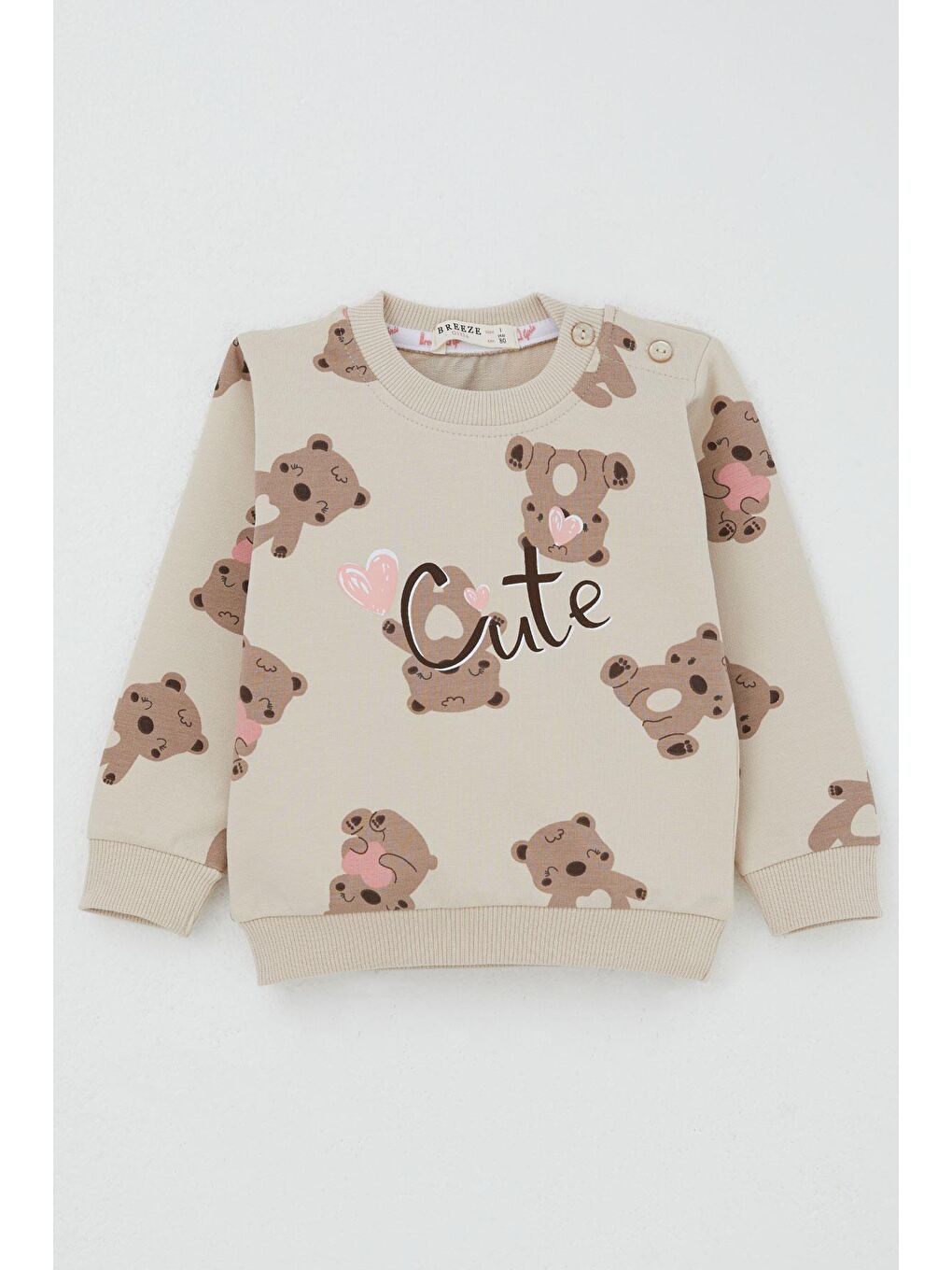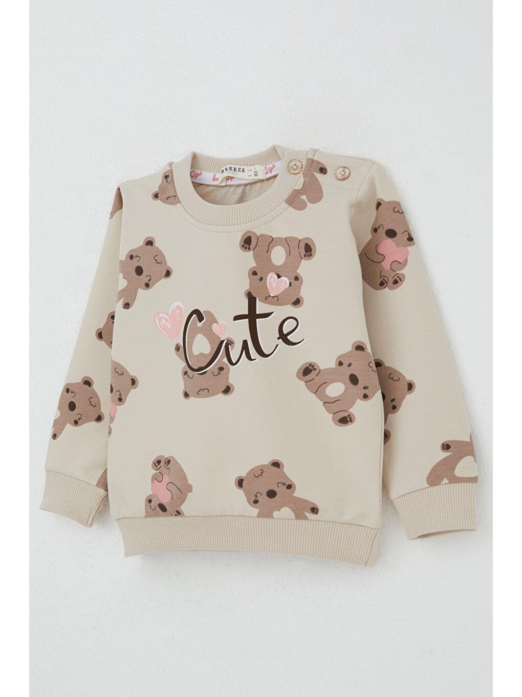 لباس ورزشی بچه گانه دخترانه بژ طرح دار خرس شاد (6 ماهه تا 2 سال)