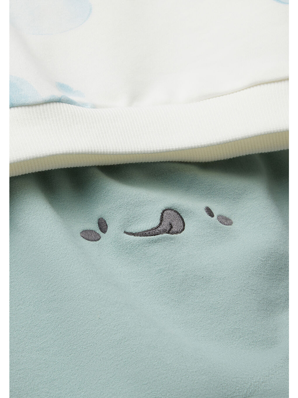 ست لباس ورزشی آکوا سبز کودک خاکستری – ست لباس ورزشی با گوشواره تماما چاپ شده و پشت دوزی پایین