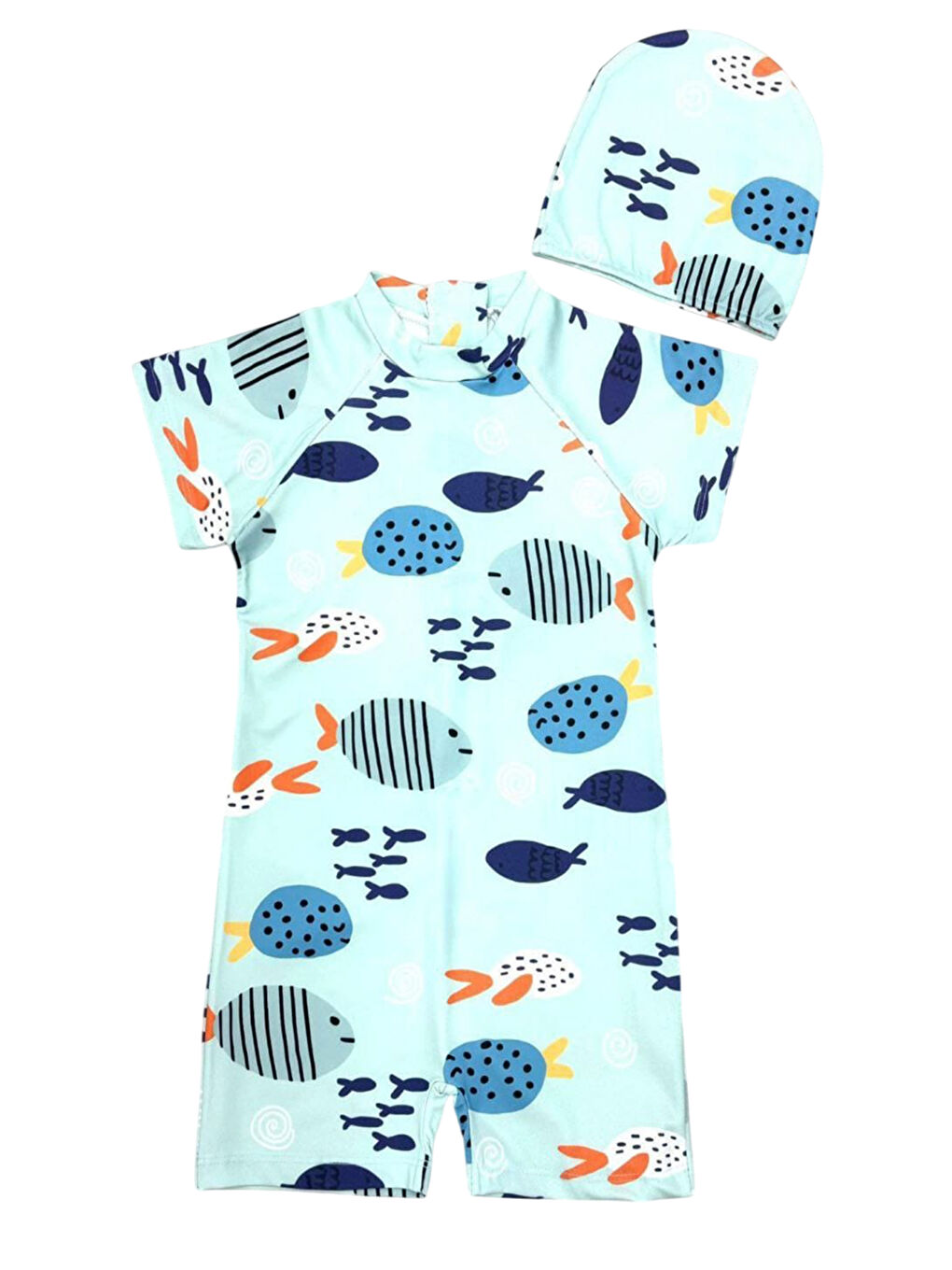 مایو پسرانه کلاه آبی، زیپ دار، ضد آفتاب