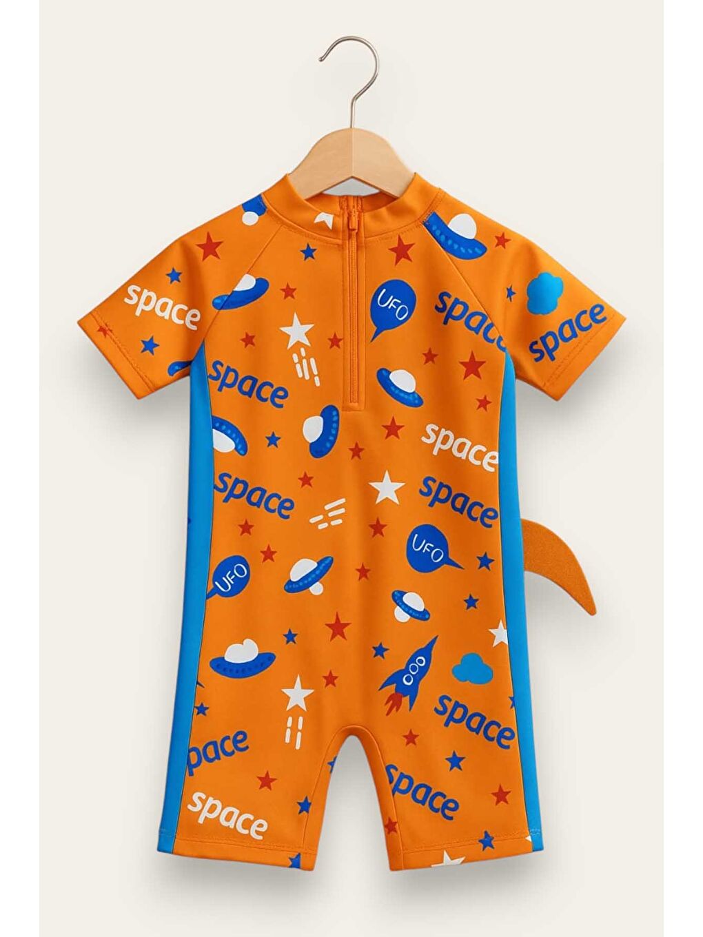 مایو زیپ دار پسرانه نارنجی با کلاه 11915