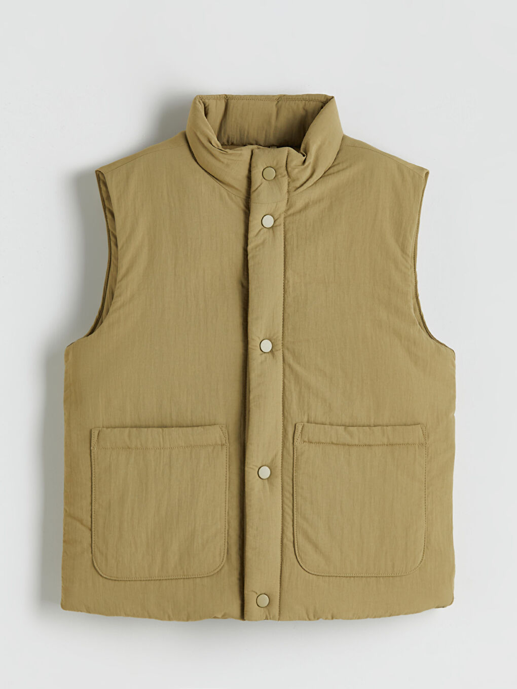 جلیقه پفی پسرانه یقه ایستاده خاکی